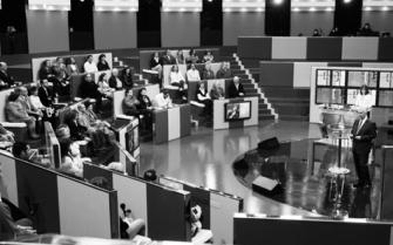 Javier Arenas, ante los ciudadanos invitados al programa, anoche.
