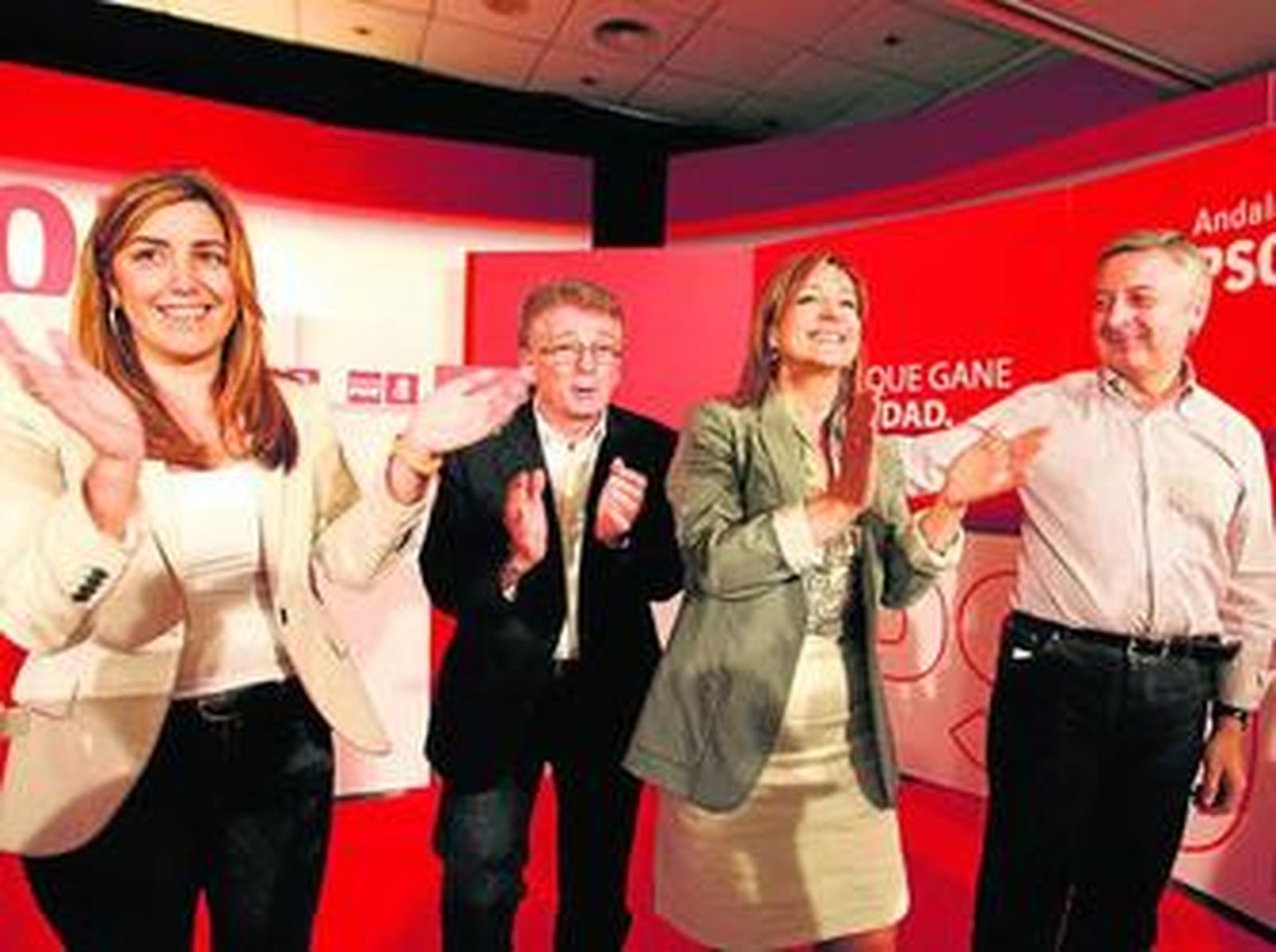 Y así, tantos otros. Como el vicesecretario general del PSOE y ministro de Fomento, José Blanco, que puso rostro y palabra al respaldo del partido a la candidata a la Alcaldía de Jerez (Cádiz), Pilar Sánchez, sin duda el caso que más quebraderos de cabeza ha provocado al aparato del partido a todos los niveles, provincial, regional y nacional. Si sigue habiendo discrepancias, desavenencias y hasta enfrentamientos, que sea en el camerino, y con la puerta cerrada a cal y canto. Pero en el escenario, todos a una. Y así se interpretó el guión en Jerez, donde la candidata a la reelección recibió en el estrado, junto al apoyo de Blanco, el de la secretaria de Organización del PSOE-A, Susana Díaz, e incluso de su rival en la provincia, el secretario general del partido en Cádiz, Francisco González Cabaña, el urdidor de la operación Fustegueras para descabalgar a Sánchez del número uno de la lista.