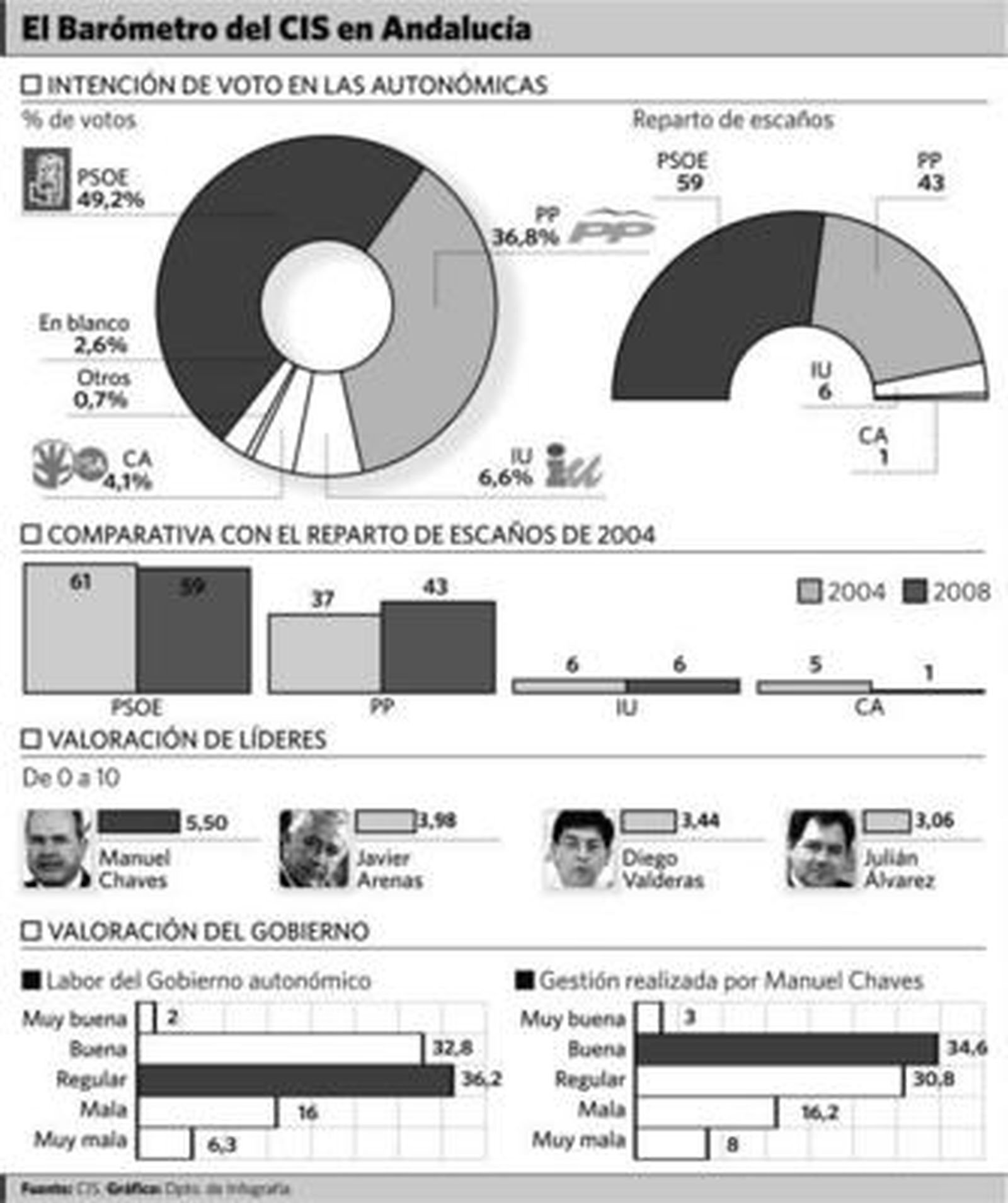 La percepción de los ciudadadanos andaluces difiere de la visión del presidente de la Junta. Según la encuesta publicada ayer por el Centro de Investigaciones Sociológicas (CIS), un 24,8 por ciento de los consultados considera mala la situación económica de Andalucía y un 11,2 por ciento muy mala frente a un 18,5 que la califica de buena y un 0,6 de muy buena. Son mayoría los que piensan que la situación es regular, un 41,6 por ciento.