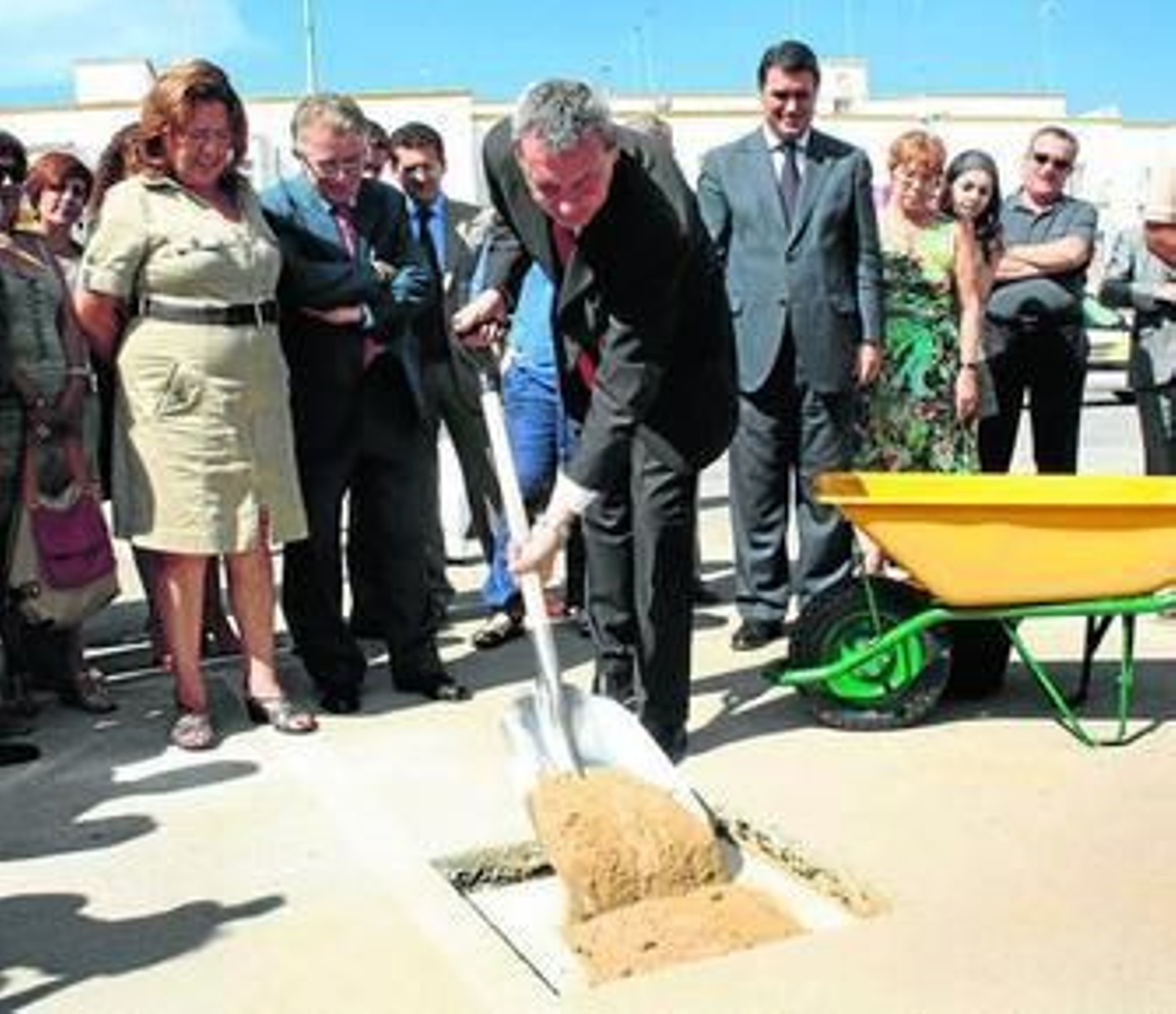 Francisco Álvarez de la Chica colocó ayer la primera piedra de Casa de las Artes, en Cádiz.