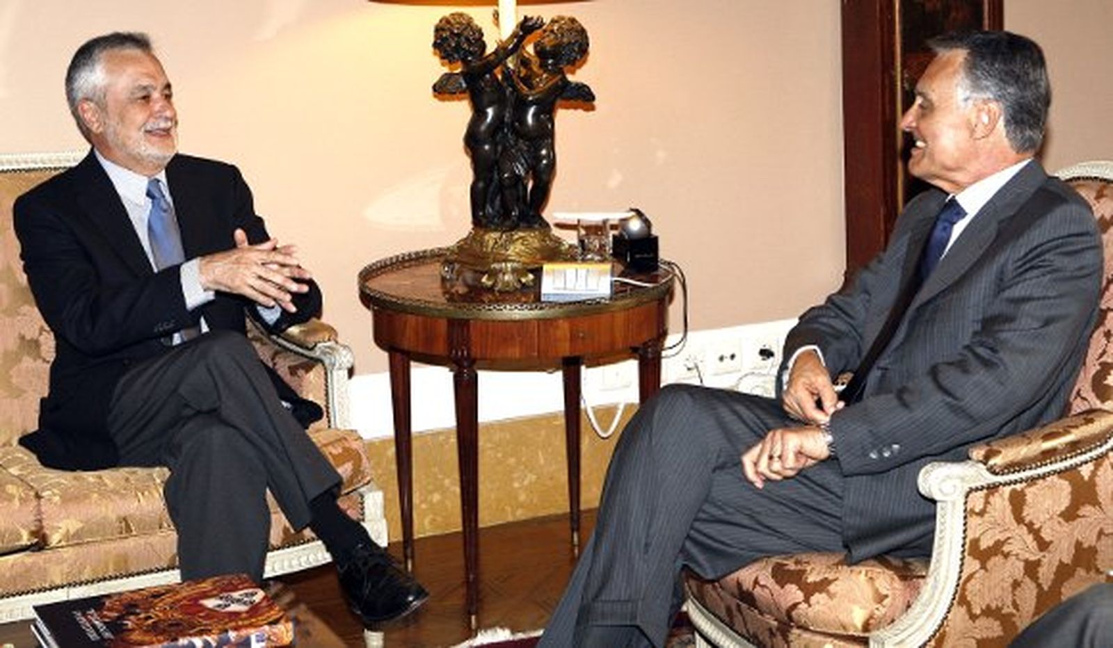 En Portugal, nada de esto. Más de media hora estuvo reunido por la mañana con el presidente Cavaco Silva en el palacio de Belem y otro tanto, pero por la tarde, con el primer ministro, el socialista José Sócrates. De ambos sacó como conclusión que "el pueblo portugués conoce Andalucía mejor que los andaluces Portugal". Cavaco Silva, que es de Loule, en Algarve, ha visitado nuestra comunidad casi desde niño, y Sócrates también desplegó un conocimiento sobre Andalucía que sorprendió a Griñán. Aunque quien más le sorprendió fue el presidente del Parlamento, Jaime Gama, quien le confesó que conocía todas las provincias andaluzas, excepto Jaén. "Lo he invitado para que en una visita oficial conozca Jaén, Úbeda y Baeza", comentó Griñán.