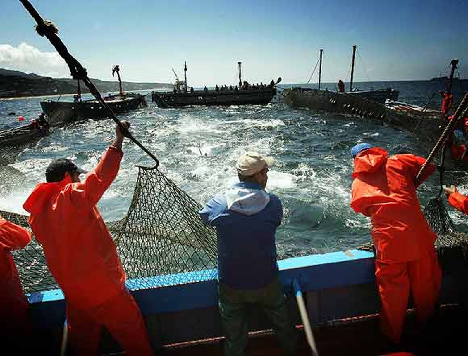 Las barcazas apenas están separadas por unos pares de metros, y en el centro el mar hierve. Ruido, agua y espuma. El hombre contra el mar. Los gigantes plateados reparten aletazos intentando escapar de su agonía. Pero es tarde. Los copejadores de agua ya están en la red.