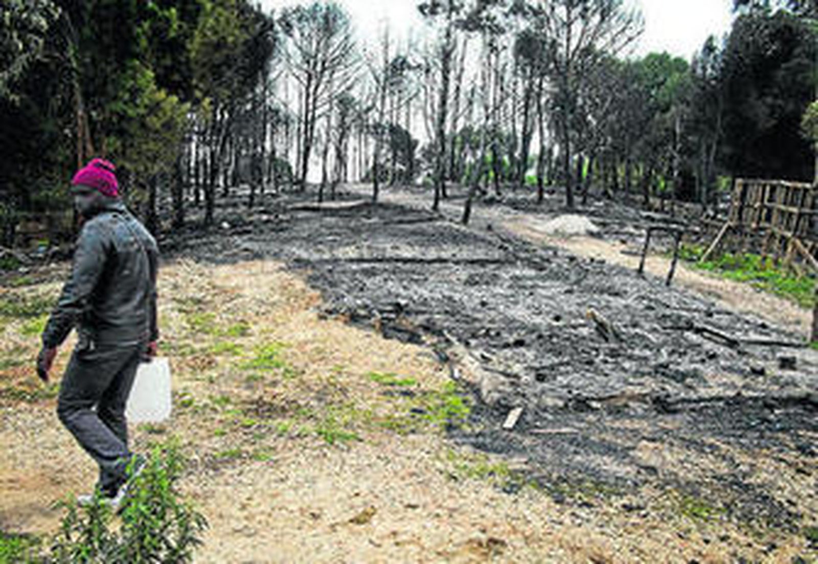 En Palos de la Frontera, escenario del incendio que anteayer arrasó un campamento del que todos sus habitantes pudieron salir con vida, lo que hasta el sábado era un minipoblado chabolista hoy es una gran explanada quemada, con restos de colchones, hierro, utensilios de cocina y sillas y sillones quemados y amontonados en un rincón. A unos cien metros, en un polígono, se encuentra la nave de la ONG Accem donde han sido acogidos los damnificados, en la que dos jóvenes senegaleses expresan rápidamente su negativa a que sus rostros se vean en una foto. "No foto, no prensa, no entrar", dicen, aunque más tranquilamente explican que muy pocos inmigrantes de los asentamientos acceden a hablar, "porque nuestras familias creen que vivimos en casas. Les tenemos un poco engañados".