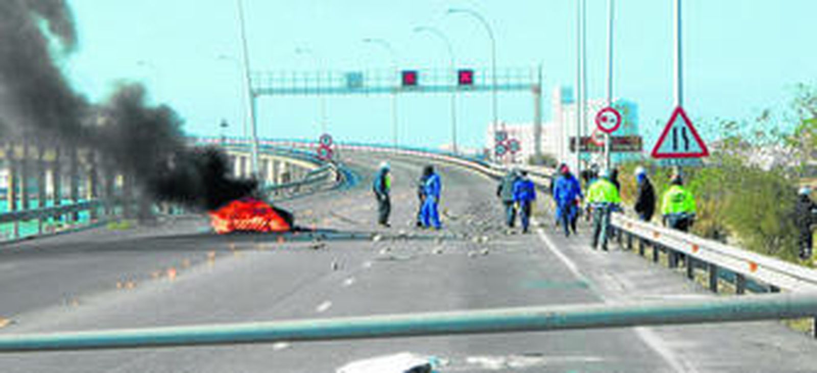 Los trabajadores de Navantia cortan el puente Carranza por la pérdida de un contrato de Repsol y Gas Natural