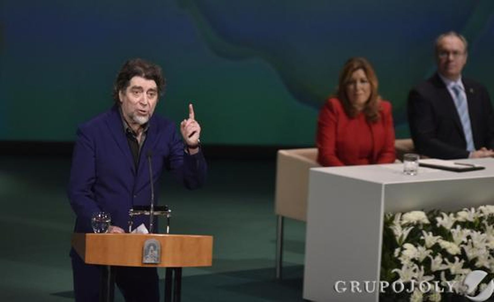 Tras definirse como "rojo con abono en la Maestranza" o "ateo que espera a la Esperanza de Triana soñando una saeta", ha pedido que se abracen "por fin las dos Españas" y ha admirado a Antonio Machado, "el mejor de los Machado, que nos enseñó cómo ser un andaluz honrado".