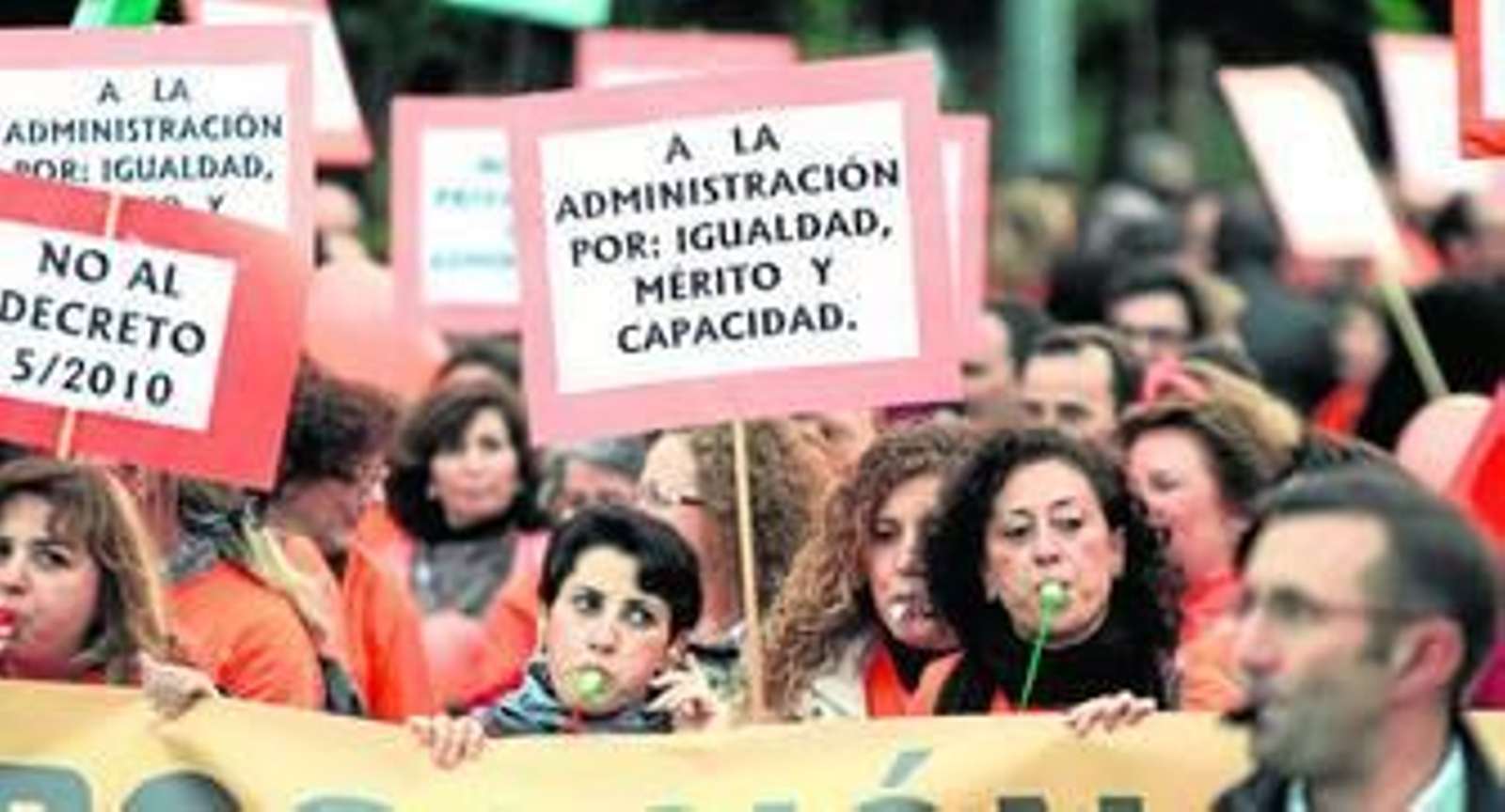Trabajo sindical a destajo, que se solaparía con la protesta contra la ley, si es que los nueve colectivos contrarios deciden continuar en la brecha. Algunos lo pretenden. Para estudiar la estrategia de futuro, el jueves se reunió en Antequera medio centenar de representantes de los sindicatos y plataformas que han convocado las ruidosas manifestaciones contra el Decreto 5/2010. De la reunión ha trascendido poco. Habrá asambleas provinciales para decidir actuaciones unitarias, aunque a las plataformas se las ve más beligerantes que a los sindicatos. Hay quien propuso en la reunión de Antequera convocar huelgas por horas, pero nada se concretó.