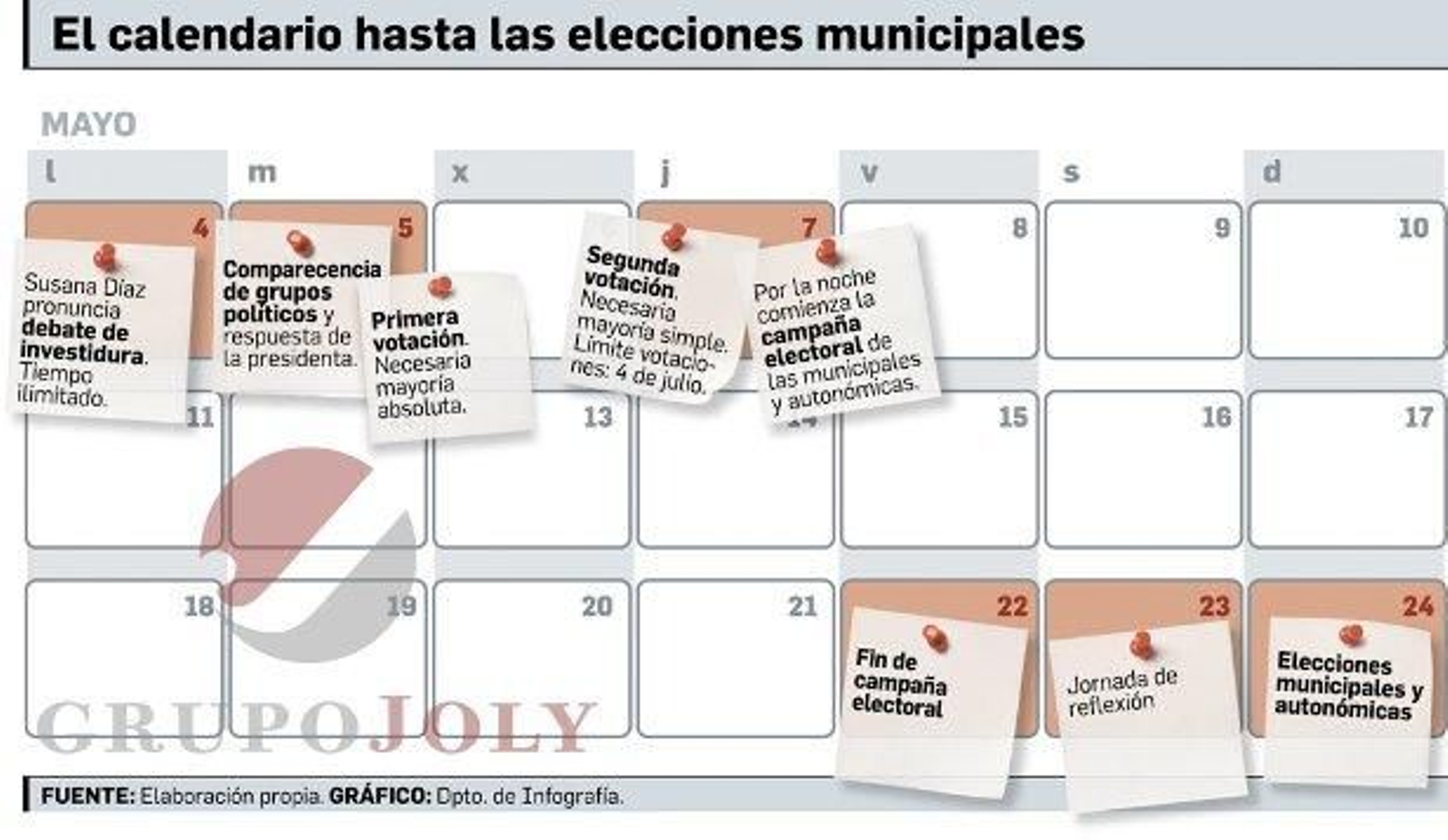 La postura del PP, que es la del no, parece inamovible. Uno de sus dirigentes explicó a este medio que su partido, "como alternativa de gobierno" que sigue siendo, no va a dejar pasar a Susana Díaz. Ya su líder, Juan Manuel Moreno, insistió el pasado domingo en este periódico en que no habría injerencias de Génova o de Mariano Rajoy en este asunto, y así parecen confirmarlo otras fuentes. "No vamos darle el apoyo a quien después puede quitarnos doscientos ayuntamientos", se indicó en referencia a las municipales de mayo. El PP comienza a manejar una agenda en la que concibe una legislatura andaluza corta, de uno o dos años, por lo que no quieren aparecer ante Ciudadanos como el partido que permitió dejar gobernar durante ese tiempo a Susana Díaz.