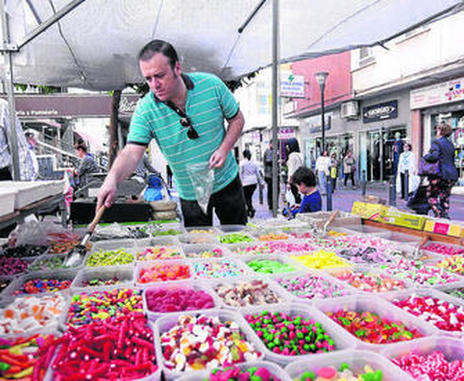 En unas jardineras junto al mercado dos hombres mantienen un mercadillo con libros de segunda mano, en el que también puede encontrarse una jaula y diversos útiles domésticos. Una mujer detiene su carrito de la compra y hojea unas novelas infantiles. A su espalda un joven subsahariano habla por el móvil apoyado a la entrada de una farmacia.