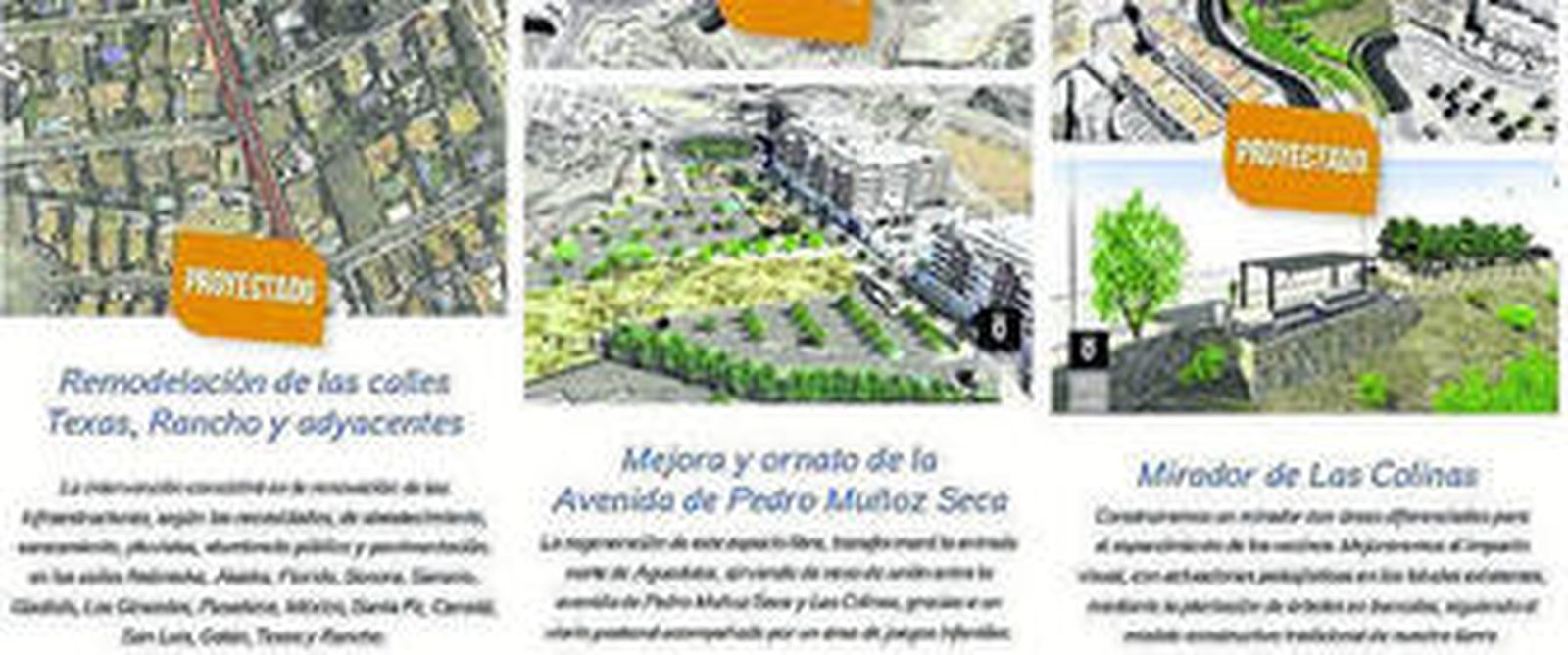 El candidato a la reelección, Gabriel Amat ha hecho público los tres importantes actuaciones que se compromete a llevar a cabo en el norte de Aguadulce, para continuar con la senda de recuperación del espacio público que se está llevando a cabo en todo el municipio. De ellas, la más novedosa contempla la construcción de un mirador en el barrio de Las Colinas con áreas diferenciadas para el esparcimiento de los vecinos. "Mejoraremos el paisaje visual regenerando los taludes con la plantación de árboles en bancales como es tradición en nuestra tierra", ha detallado Amat.