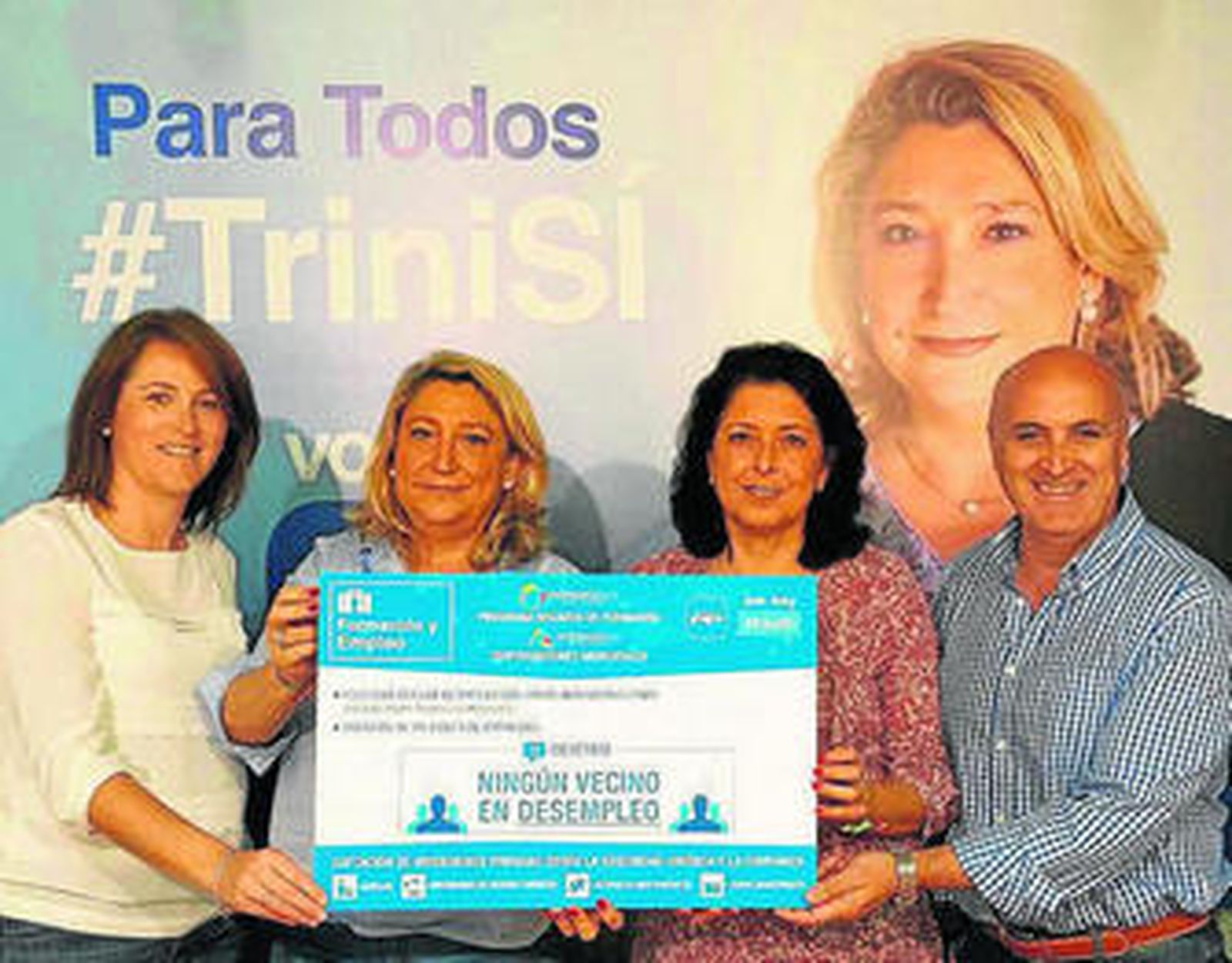 "Junto al esfuerzo que se ha llevado a cabo en el campo de los servicios sociales, hemos realizado una importantísima actuación de fomento del empleo y de la formación que ha dado resultados francamente esperanzadores y que, ahora, queremos reforzar con una de las grandes apuestas de nuestro programa electoral", señaló ayer la candidata a la reelección para la alcaldía, Trinidad Herrera Lorente, quien detalló las líneas básicas de dicho programa en materia de fomento de empleo, acompañada por los miembros de su candidatura Antonio Laborda, María del Mar Medina, Mari Carmen Reinoso y Marta Rodríguez.