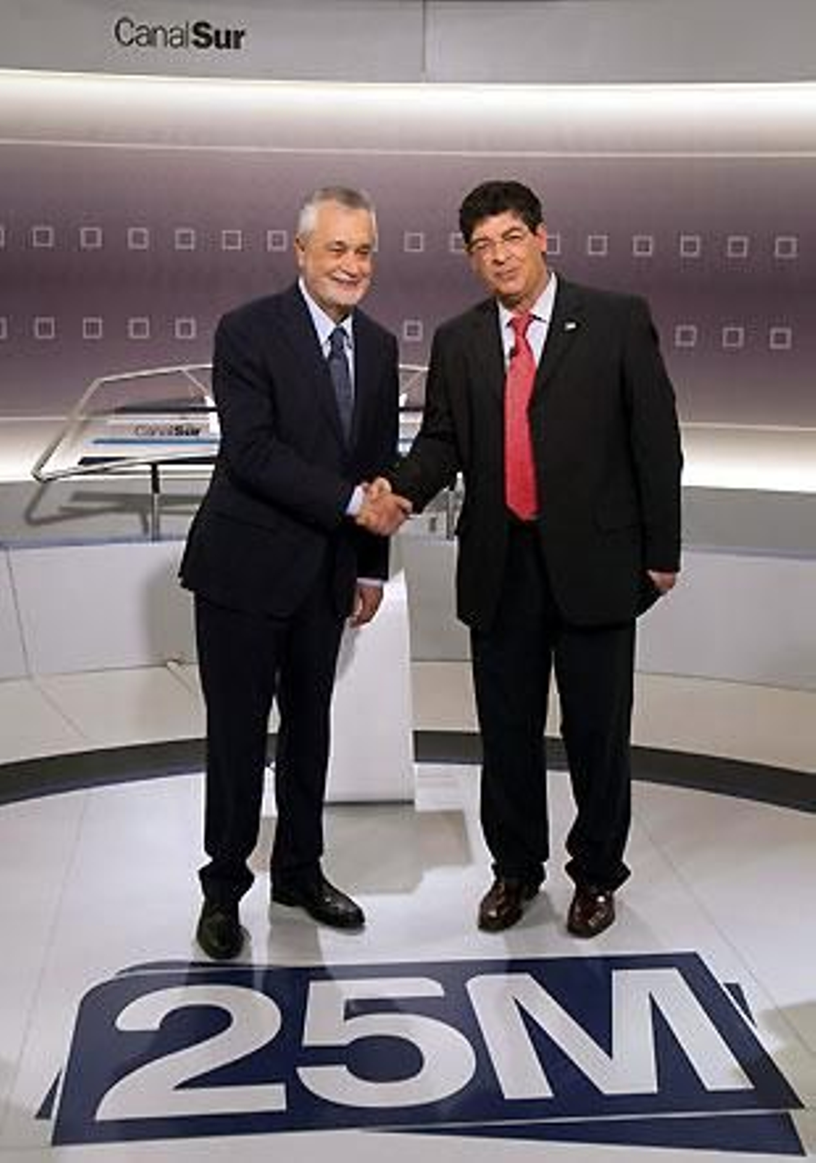 Griñán y Valderas contrastan sus propuestas en una cita a la que no ha acudido Arenas por celebrarse en Canal Sur y que tuvo su momento álgido cuando se habló de los ERE.