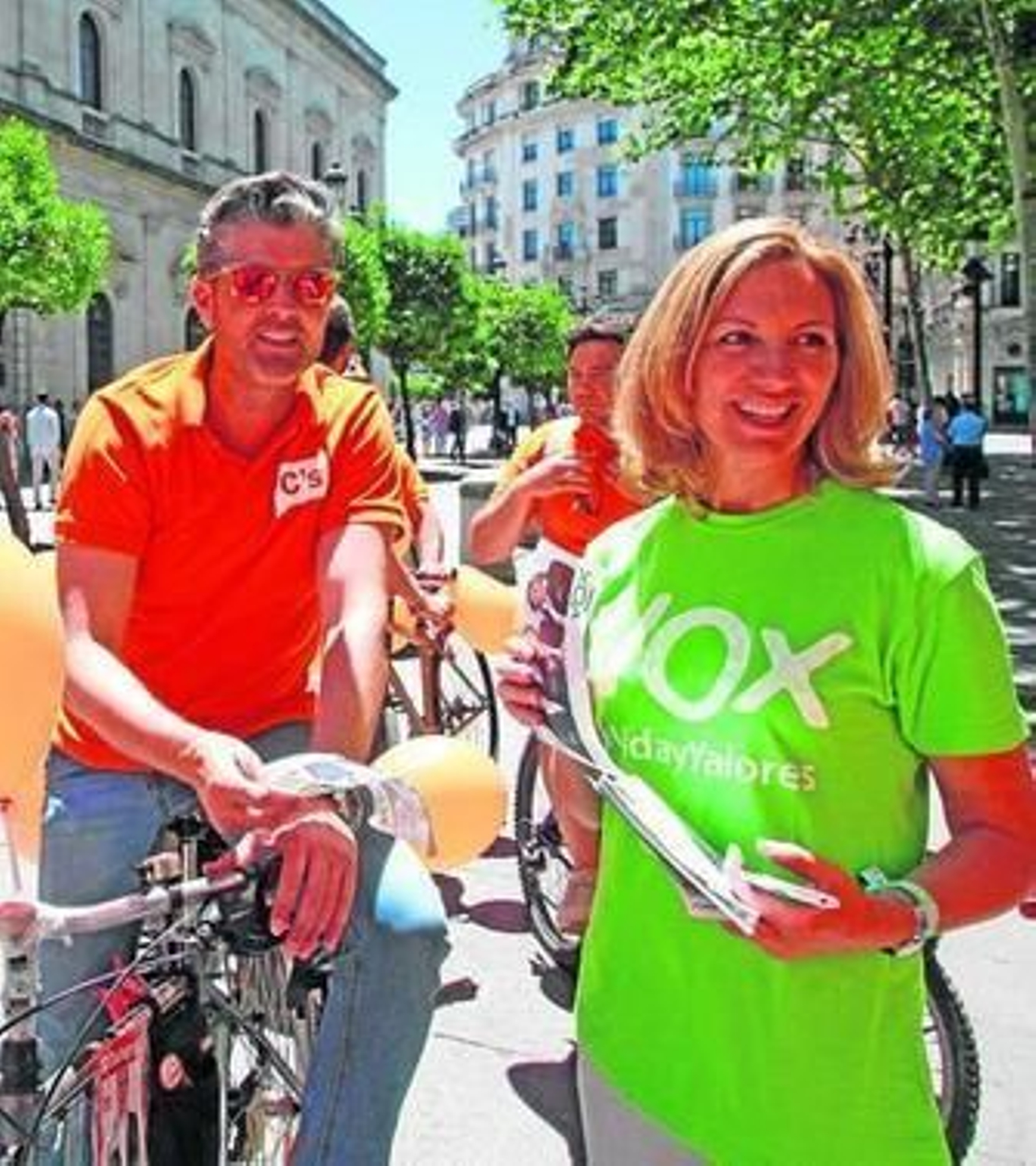 En la Plaza Nueva coincidieron militantes de Ciudadanos en bicicleta, procedentes de la Buhaira, con militantes de Vox que repartían propaganda electoral. Hubo alguna foto de confraternización entre el verde y el naranja, fusión de colores a una semana de las elecciones.