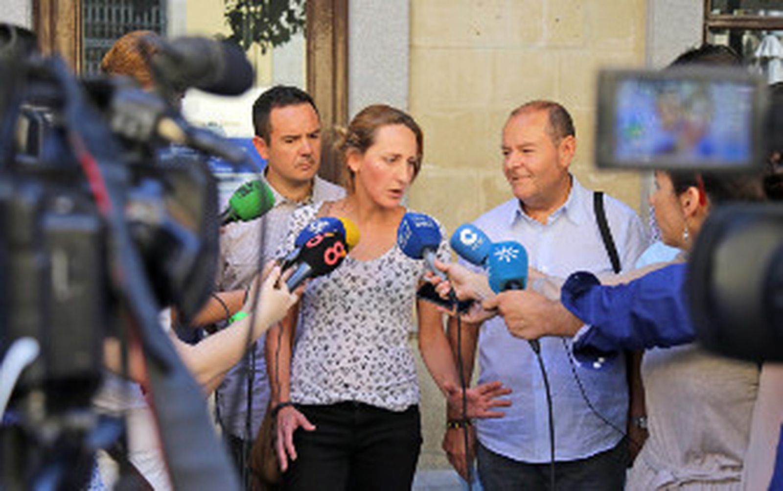 Esta primera rueda de prensa de la agrupación en plena calle y nada menos que delante del Ayuntamiento, llamó la atención de muchas personas que se agolparon alrededor de los concejales no sólo para escucharlos, sino también para cuestionarles y preguntarles sus siguientes pasos. "Oye perdona, ustedes cómo se definen, ¿de izquierda o de derecha?", preguntó de repente un hombre. "De izquierda claro", respondió Ángeles. Fue la respuesta que esperaba el jerezano -trabajador despedido del Ayuntamiento con el ERE-, quien añadió que "pues si es de izquierda los pactos no deberían ser tan complicados. Decís que cualquiera puede votar, bien, si ahora vienen 20.000 personas del PP y votan que sí al pacto con Pelayo, ¿qué van a hacer? ¿Van a pactar con el PP?". González volvió a tomar la palabra para señalar que "entiendo que haya incertidumbre, que haya colectivos que necesitan defender el interés del propio colectivo, pero nosotros tenemos que defender los intereses de todos los ciudadanos".