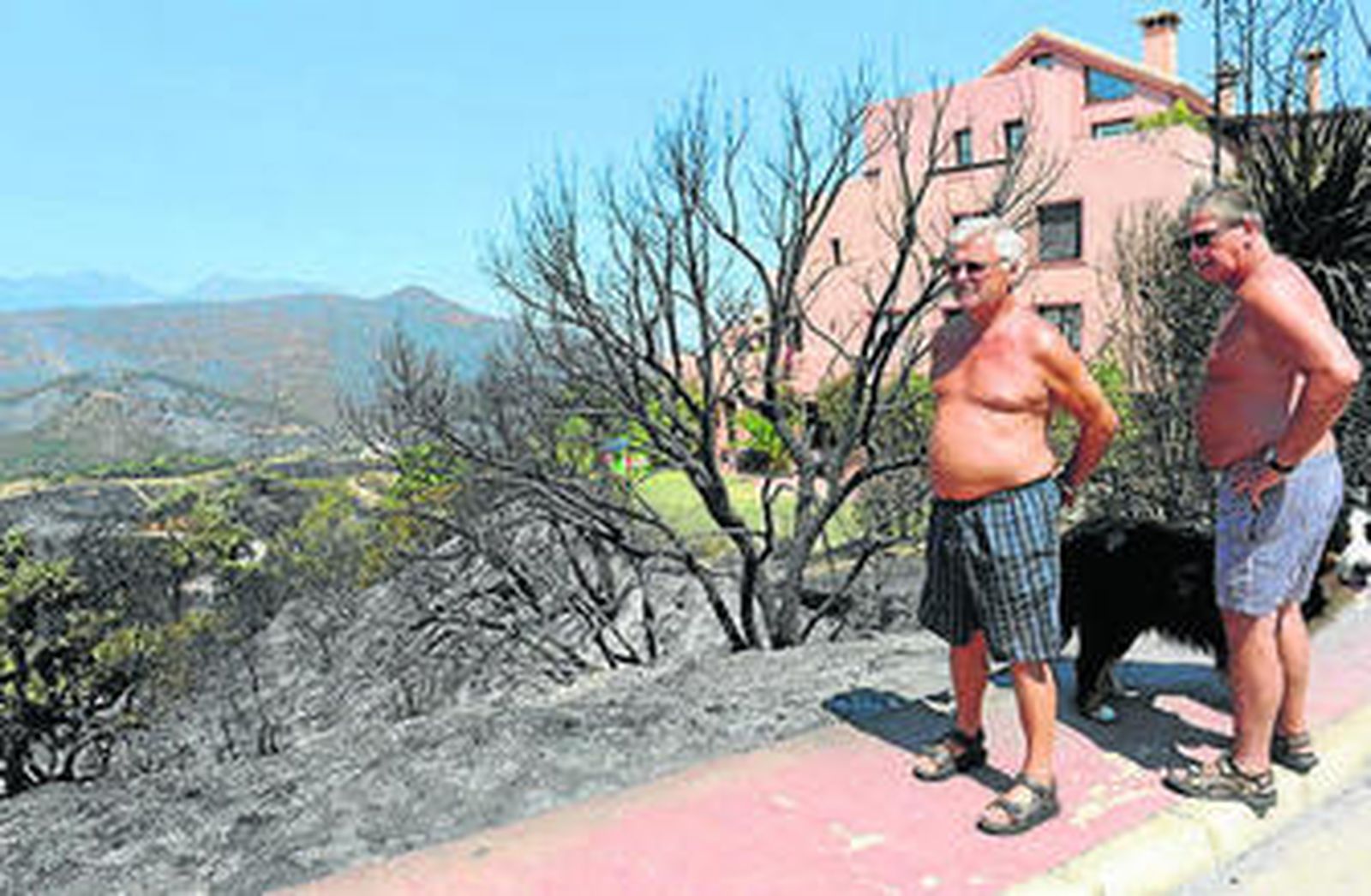 Más de 500 hectáreas de pinar y matorral calcinadas es el balance provisional de la superficie que las llamas han arrasado en los términos de los municipios malagueños de Mijas, Marbella y Ojén, que desde el domingo han sufrido el peor incendio de los últimos años. Casi 300 viviendas desalojadas, cuatro de ellas seriamente afectadas, fue la otra gran consecuencia de este fuego en el que hubo que desplegar un dispositivo de alrededor de 400 personas para poder hacerle frente y que a última hora de ayer aún no había podido ser controlado por completo. Fue el segundo siniestro que se produjo ese mismo día en una zona cercana, por lo que las primeras hipótesis apuntan a que pudo ser intencionado.