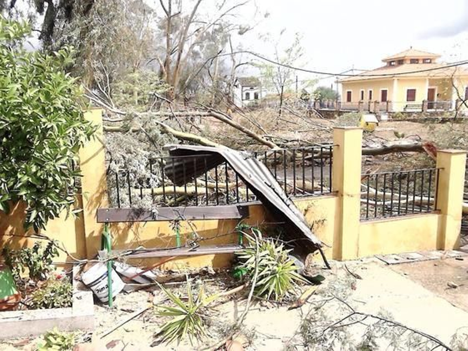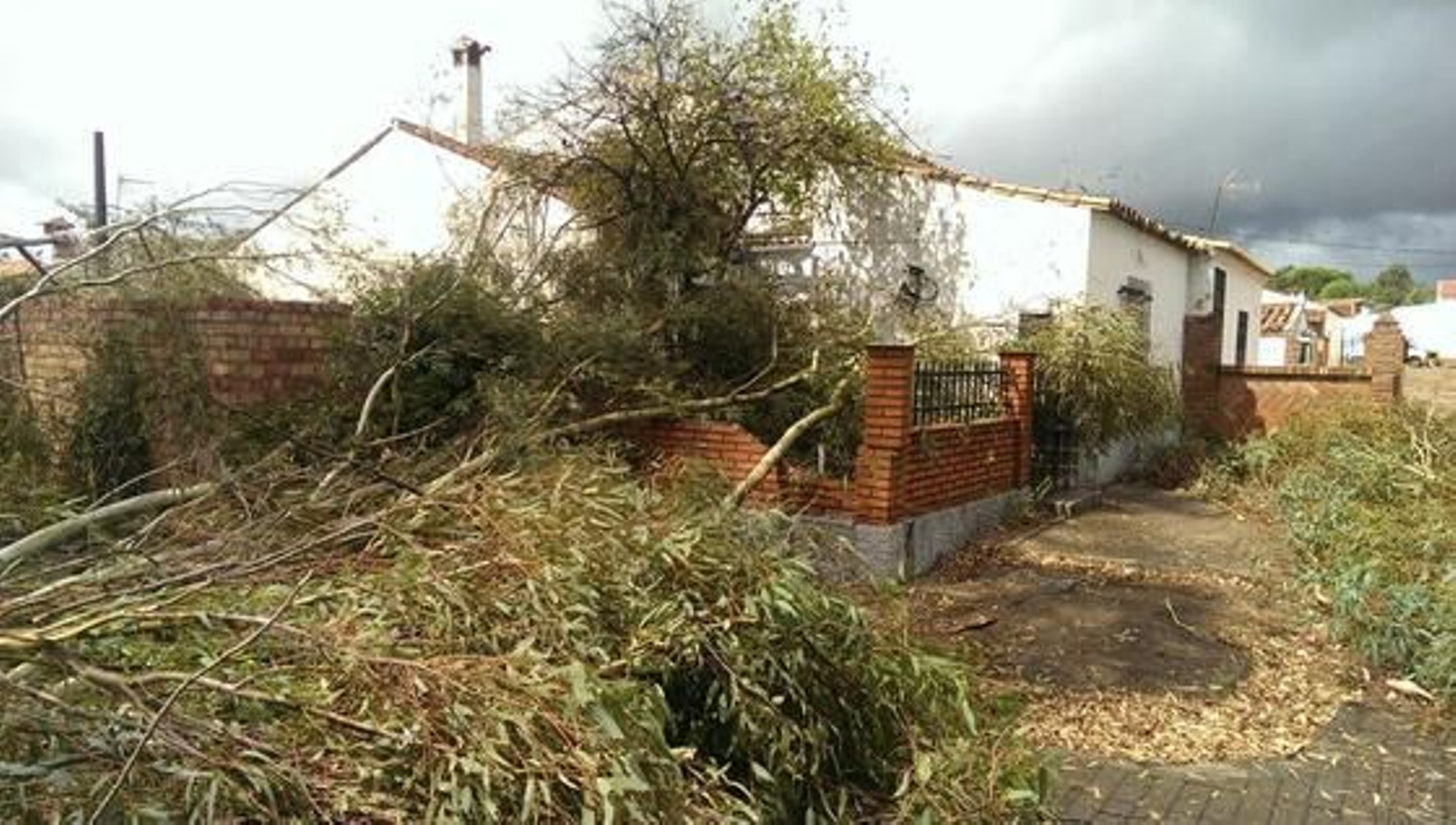 En cuanto a los daños, muchas de las casas tenían los tejados completamente levantados, las tapias del exterior caídas, toldos que se desprendieron y salieron a volar y los cristales rotos. Algunos habitantes mostraban apesadumbrados los desperfectos en sus vehículos, uno de los cuales tuvo que ser retirado por la grúa al tener la luna totalmente destrozada por una rama.