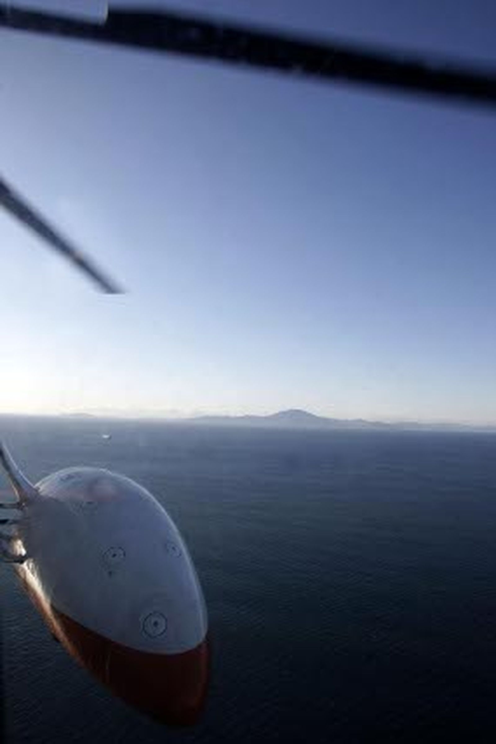 La imagen del Fedra a vista de pájaro sigue impresionando. A bordo del Helimer Andalucía sobrevolamos el carguero, de 200 metros de eslora, que encalló el día 10 junto al Peñón de Gibraltar. Hoy, un día claro y sin apenas viento, el aparato, un helicóptero de la clase Sikorsky S-61 de Salvamento Marítimo, realiza una de las habituales salidas de inspección de lucha contra la contaminación por la Bahía de Algeciras, ahora incrementadas para controlar posibles vertidos.