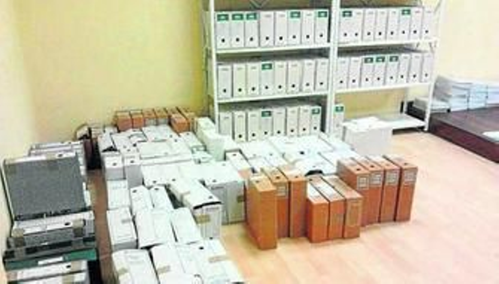 En la actualidad, la extensa documentación incorporada a la causa se encuentra distribuida, en algunos casos, en carpetas, mientras que la inmensa mayoría se acumula en pilas de papeles distribuidos por el suelo de una antigua sala de vistas que ahora este juzgado utiliza como archivo, tal y como demuestran las dos fotografías que acompañan esta información.