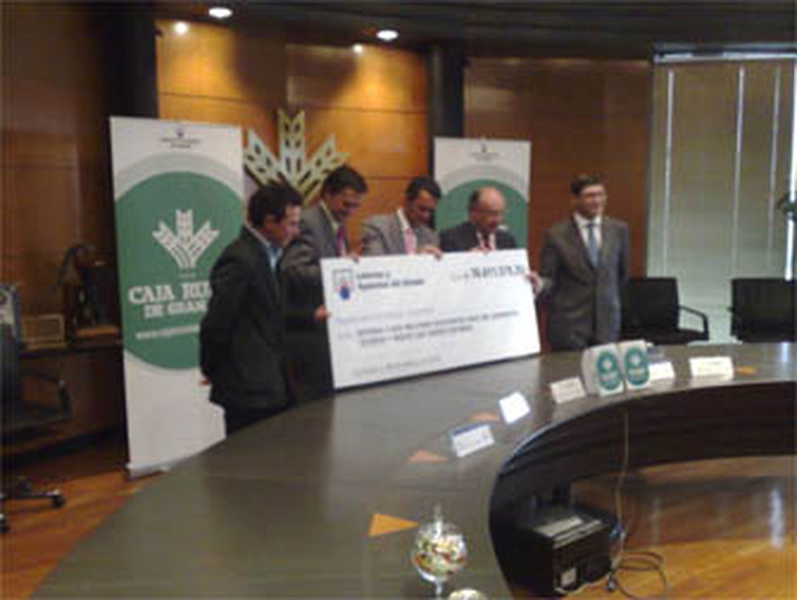 Ya está en la Caja. El cheque por valor de 76 millones de euros del premio de los Euromilllones que cayó en Montefrío hace unas pocas semanas ya se encuentra a buen recaudo en manos del director general de la Caja Rural de Granada, Dimas Rodríguez.