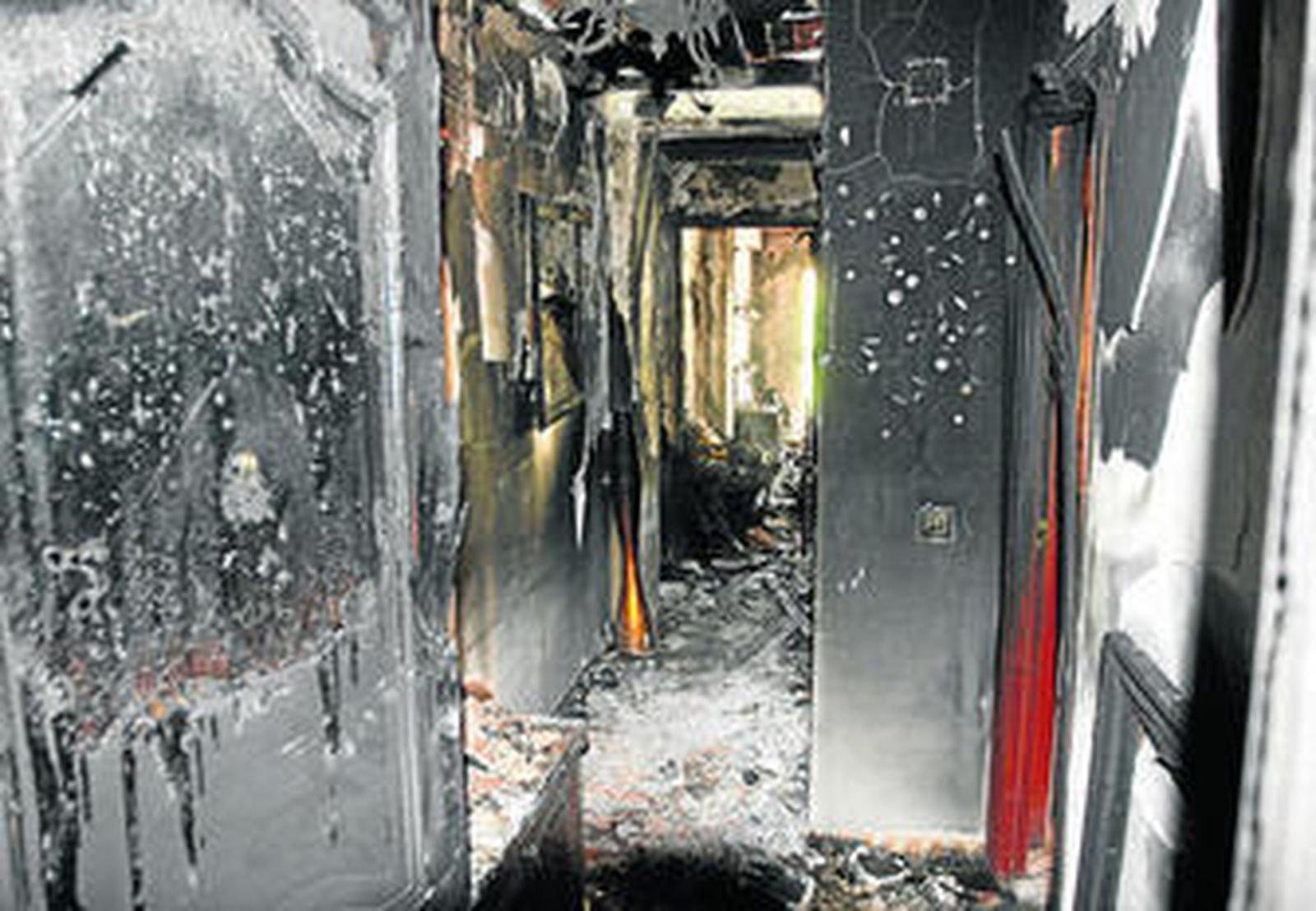El hombre salió del piso, pero regresó con un extintor para intentar sofocar las llamas