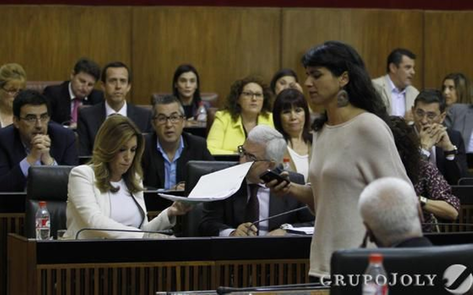 El emblema más reconocible de Podemos, la consulta de las decisiones a sus seguidores, sobrevino ayer al escenario de la negociación para la investidura de la candidata del PSOE, Susana Díaz, como presidenta de la Junta. La secretaria general de la formación, Teresa Rodríguez, confirmó a los periodistas el debate interno para convocar un referéndum si la posición de Podemos varía del no rotundo actual hacia la abstención, giro todavía improbable a tenor de las respuestas que ha encontrado de la dirigente socialista a sus exigencias: no de Díaz a la profesionalización de la Administración andaluza con funcionarios en cargos que ahora ocupan políticos y nada sobre la retirada de cuentas bancarias a entidades financieras que ejecuten desahucios.