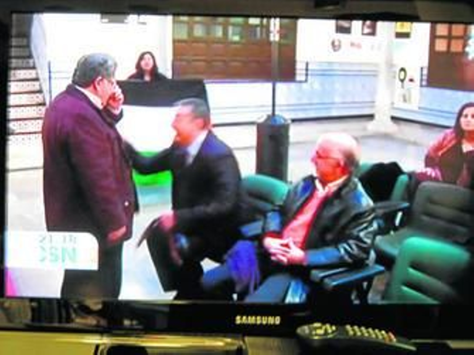Aunque finalmente el presidente de los periodistas granadinos dejó caer el cinturón sin agredir a la manifestante, sí se dirigió hacia su compañera -que grabó todo el incidente con una pequeña cámara- para increparle "¡márchate!" y empujarla. Durante todo el incidente, las dos simpatizantes de Palestina continuaron gritando lemas como "¡Palestina vencerá!", "¡Boicot Israel!" o "El Sionismo se impone".