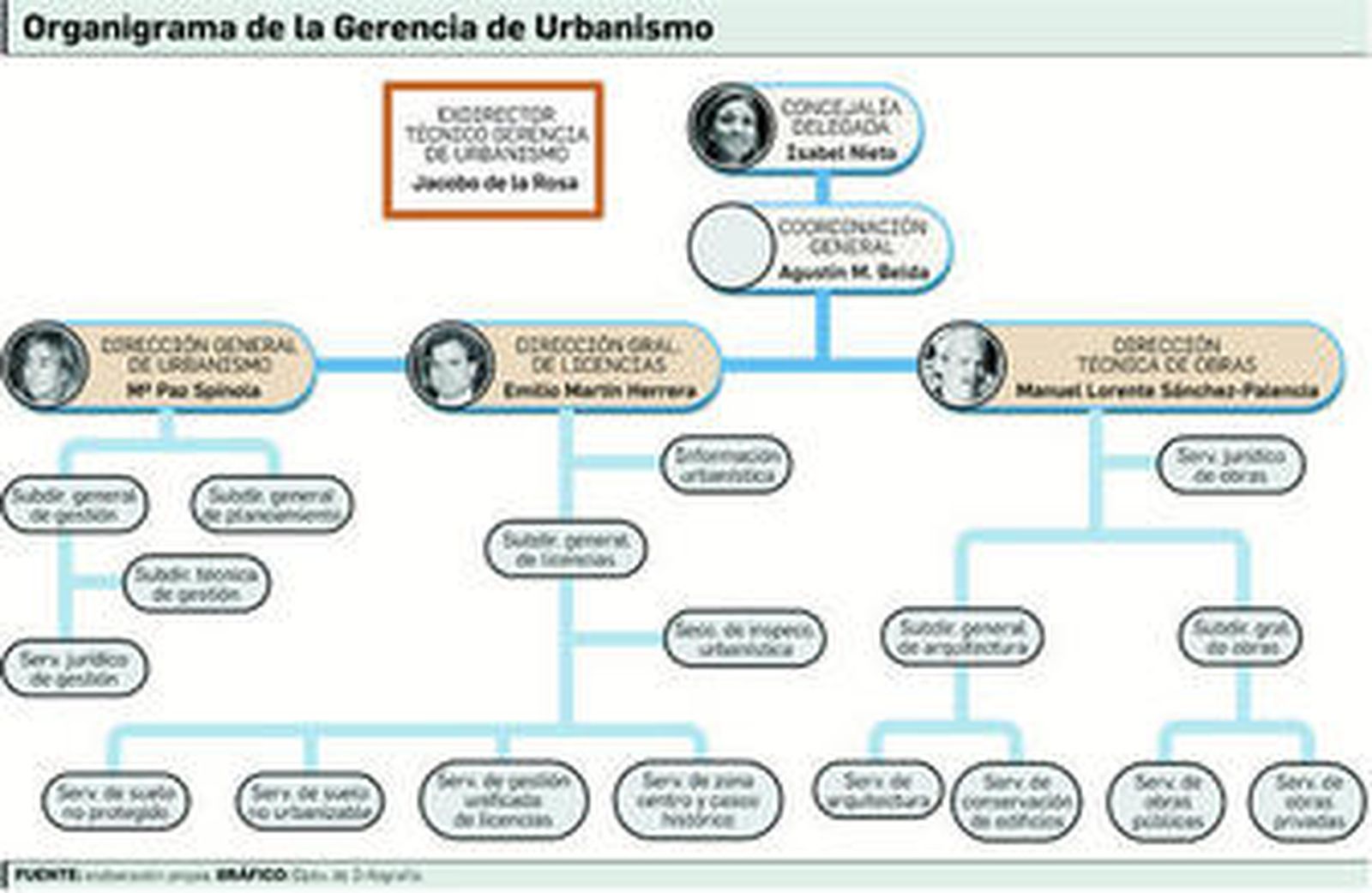 Jacobo de la Rosa ya no está entre los cargos de responsabilidad de esta Concejalía, pero durante muchos años ha sido pieza clave. Estuvo al frente de Licencias a finales de los 90, luego cambió a jefe de Arquitectura (era un pequeño descenso) y tras la llegada de Torres Hurtado a la Alcaldía (en 2003), este funcionario que militaba en el Partido Popular se puso al frente del área. Quienes lo conocen por su trabajo, dicen que se comportaba como un hombre "educado, muy afable, risueño e, incluso, adulador", pero que era "reservado y gris".