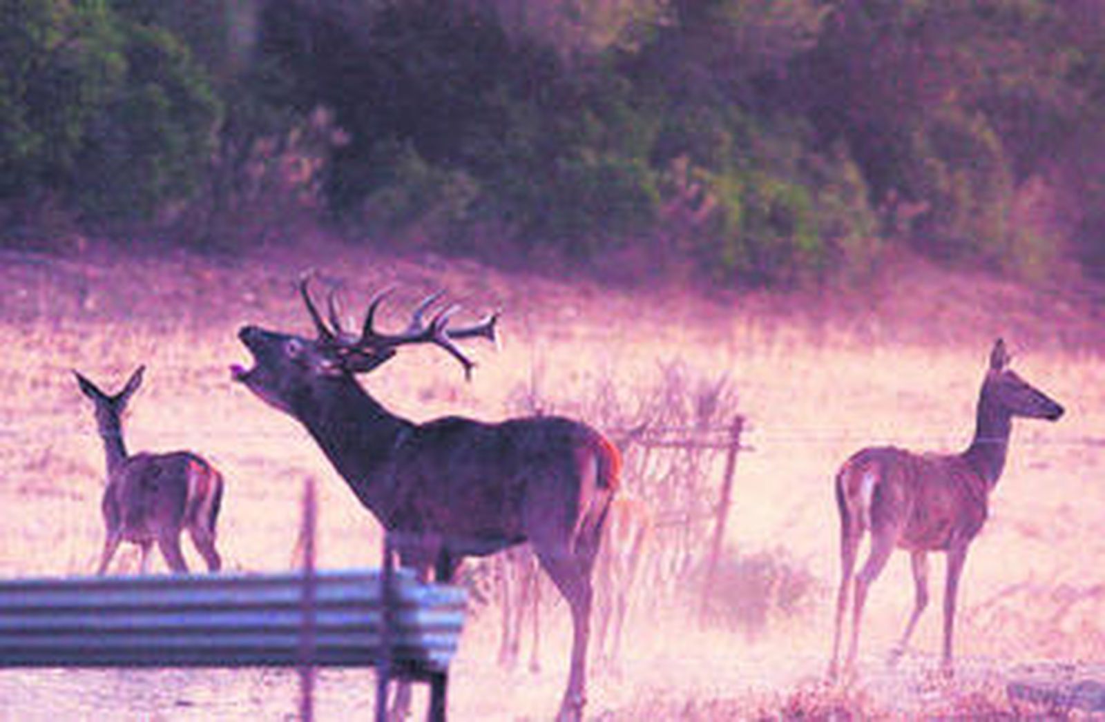 "¿Hay aspirante para dieciséis puntas?", preguntamos a Miguel, que es el que se conoce por su nombre a las cerca de 300 cabezas de la finca. "Hay uno que le anda rondando, pero yo creo que no se medirá este año. El próximo, si siguen aquí, le retará". Tenemos la suerte de ver al aspirante, catorce puntas, en la zona baja de la finca, acompañado de otra corte de ciervas. Cae la noche y lanza su poderoso berrido. Lo escuchan las ciervas y lo escucha dieciséis puntas. El reto está tendido. Te espero el próximo año.