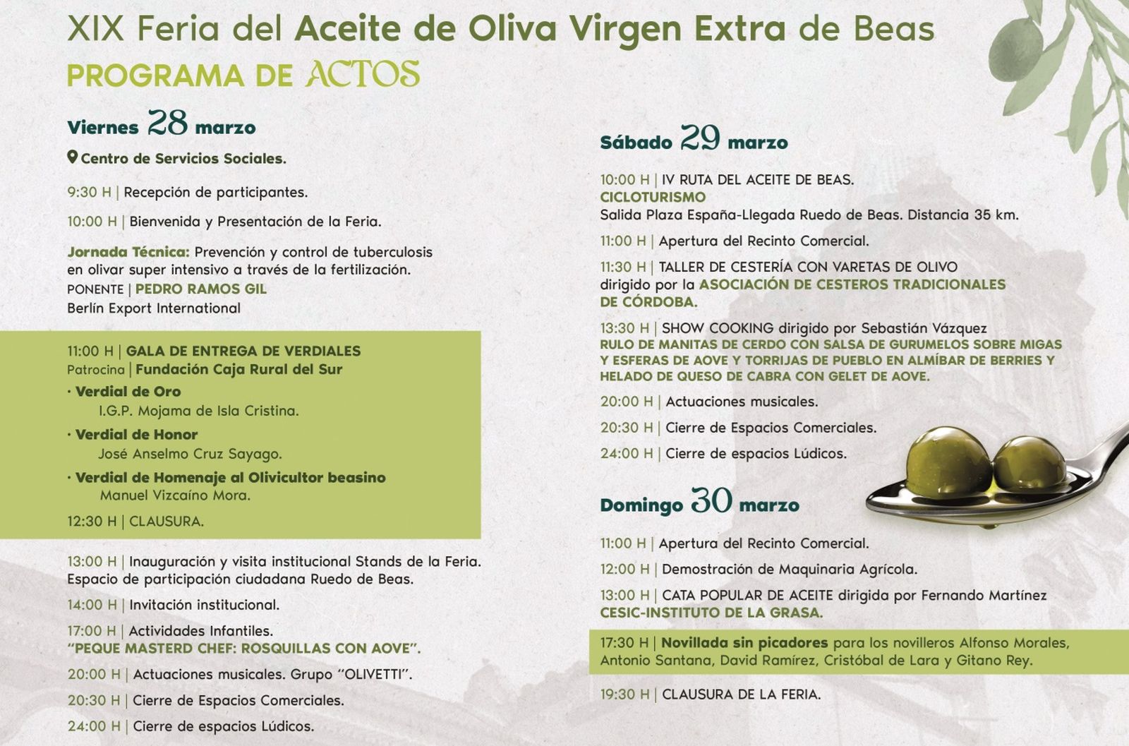 Beas acoge este fin de semana, del viernes 28 al domingo 30 de marzo, la XIX edición de su Feria del Aceite de Oliva Virgen Extra.