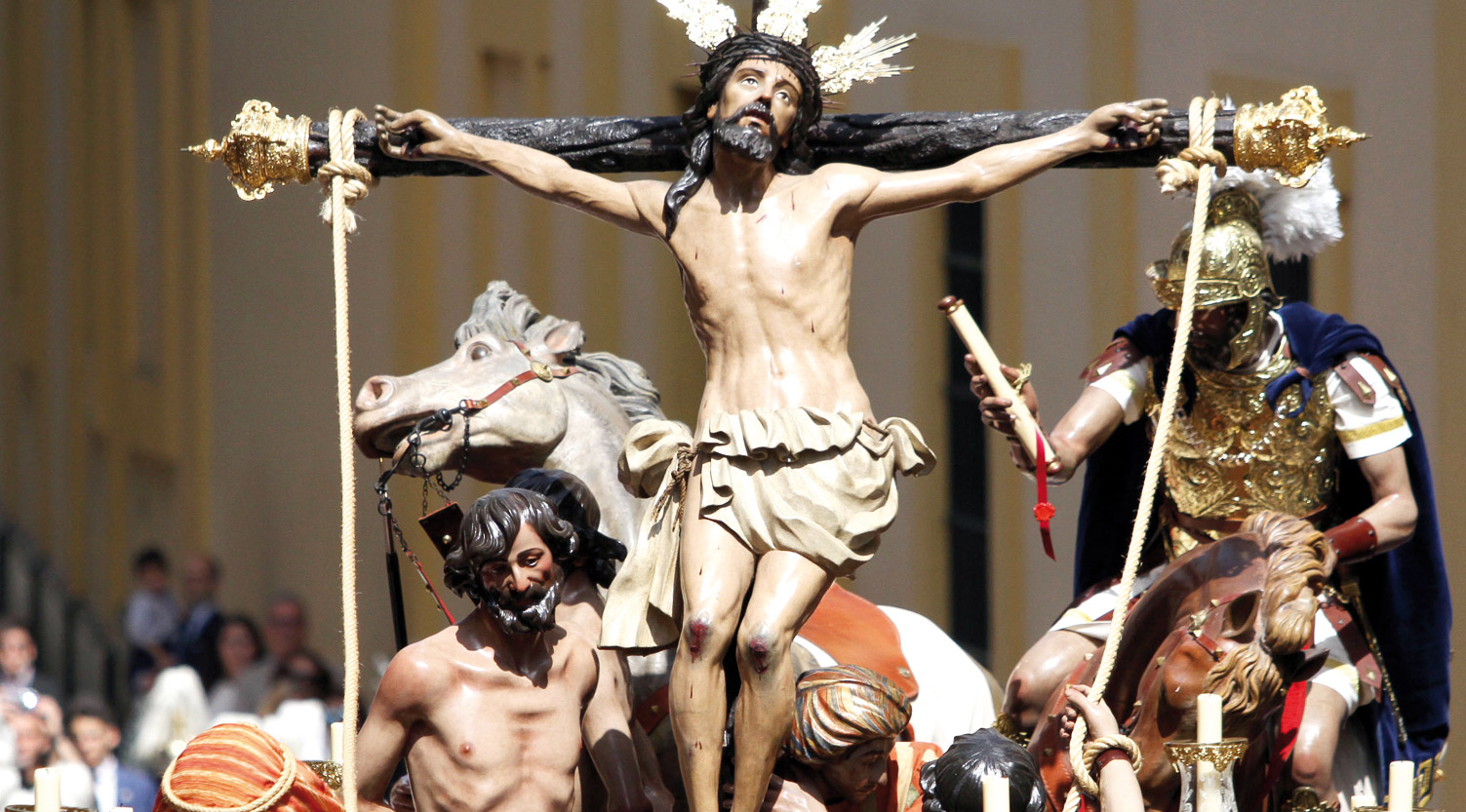 La hermandad estrena nuevas orfebrerías, como el medallón del pertiguero o varas de acompañamiento. El paso de misterio del Santísimo Cristo de la Exaltación es uno de los más antiguos que procesionan en la Semana Santa de Sevilla, desde el siglo XVII. Destaca además por sus grandes dimensiones y su peso, que supera las tres toneladas.