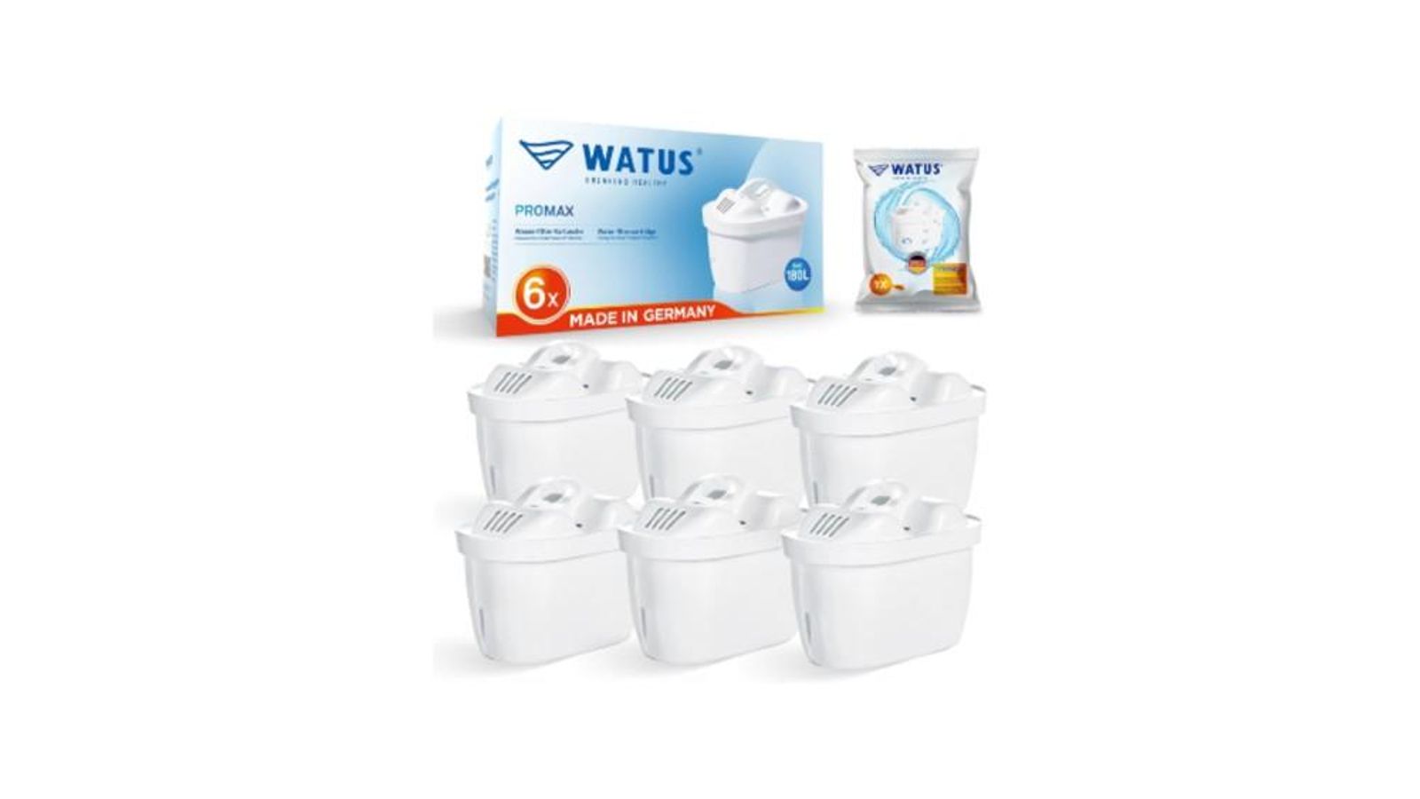 El pack de 6 filtros de Watus es compatible con numerosos modelos de Brita y también funciona con filtros de botellas de agua de AmazonBasics. Con una duración de hasta 180 litros o 1 mes por filtro.