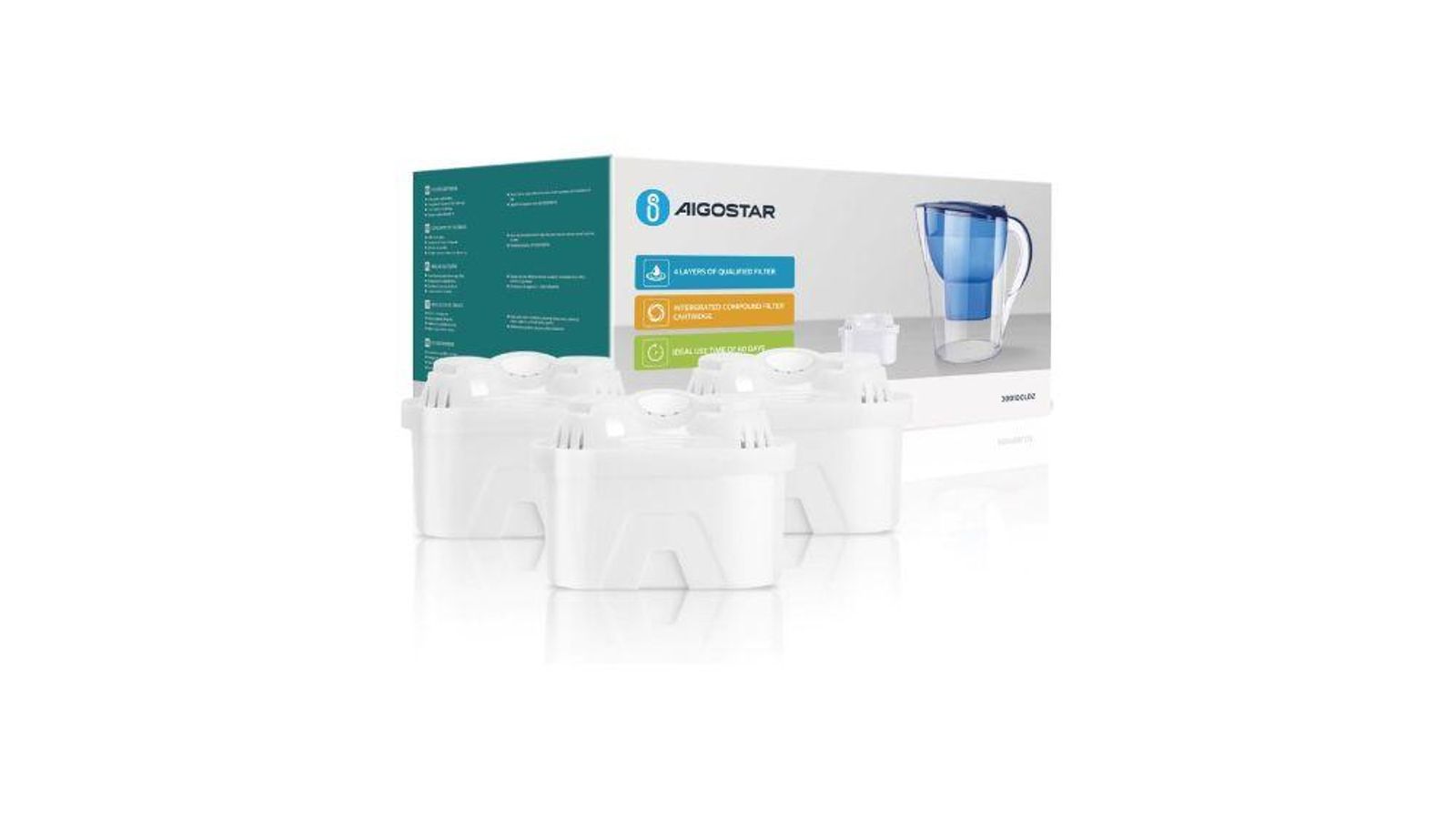 Bebe siempre agua limpia y fresca con el pack de 3 filtros de repuesto Aigostar, diseñado para ofrecer hasta 6 meses de agua purificada. Gracias a su tecnología de filtrado cuádruple —que incluye una capa de resina y carbón de coco japonés kuraray— cada filtro elimina sedimentos, cloro y olores, garantizando un agua de mejor sabor.