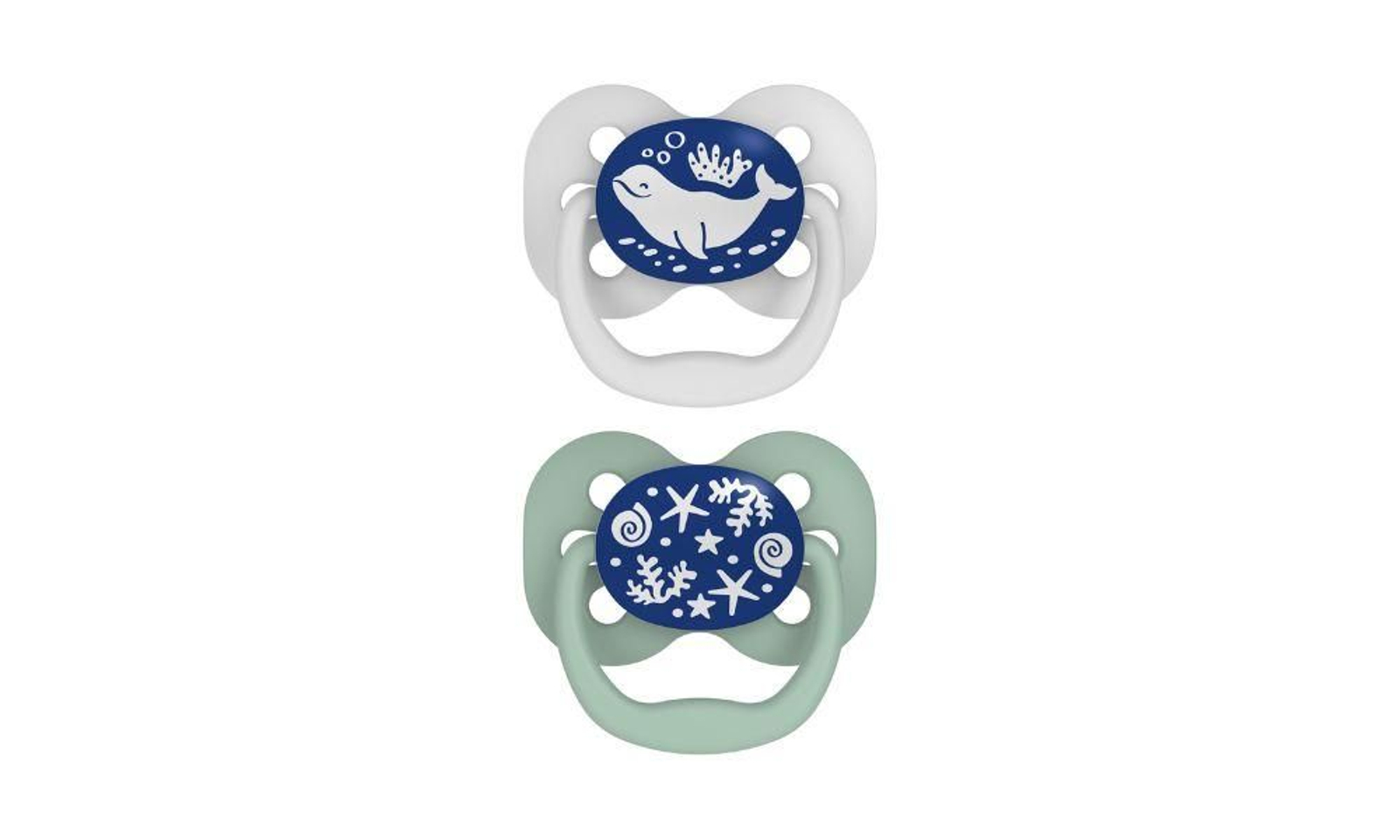 Estos chupetes Suavinex que hemos elegido como siguiente alternativa son muy bonitos, pero más allá de eso debemos decir que están diseñados para cuidar la boca de tu bebé de entre 0 y 6 meses. Su tetina fisiológica y simétrica permite un ajuste natural y cómodo, respetando la posición de la lengua. Además, su textura ultra-suave de silicona imita el pezón materno, ofreciendo una sensación más cálida. ¿Lo más divertido? Brillan en la oscuridad.