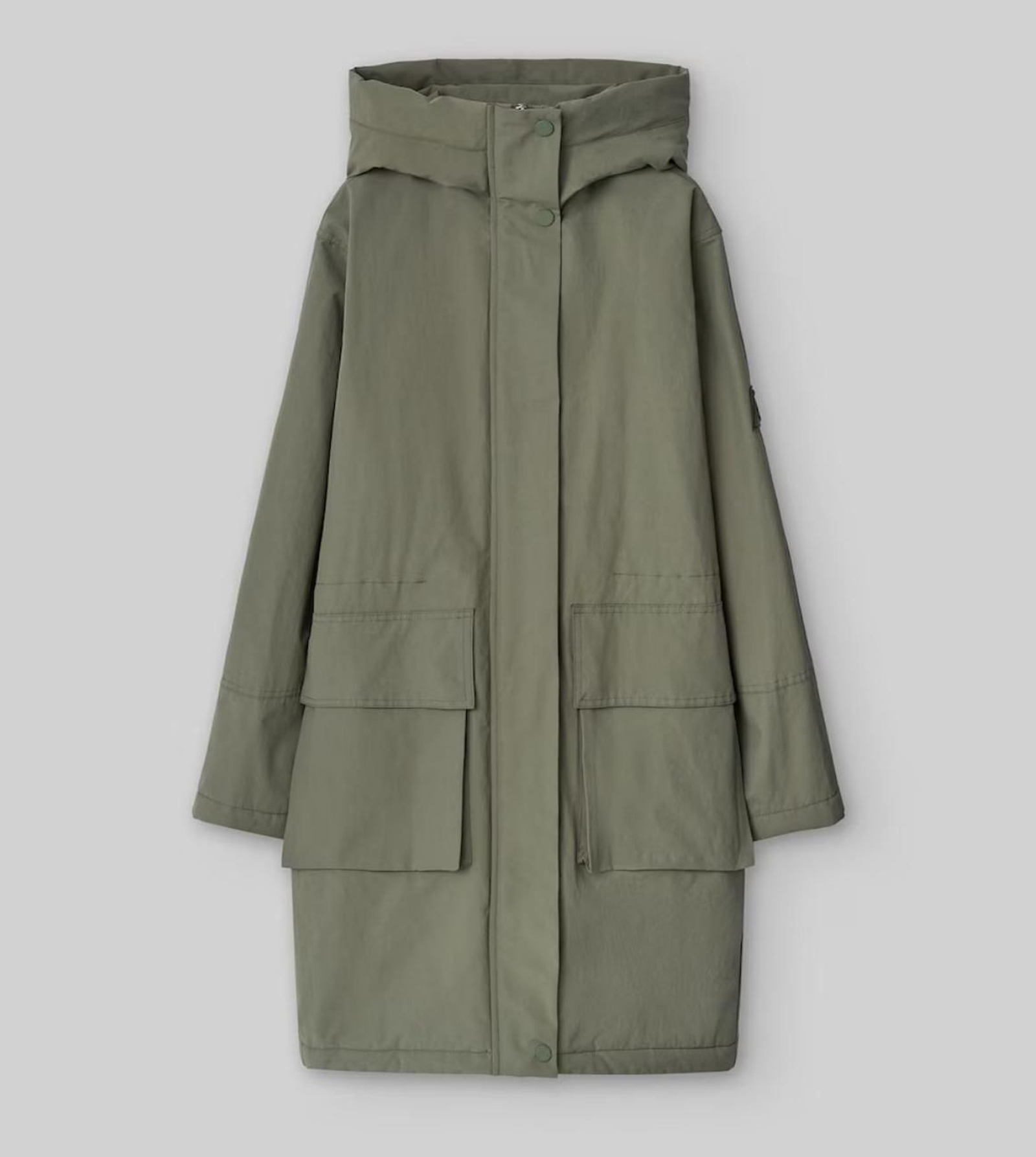 En un azul super favorecedor, el plumífero acolchado de Adolfo Dominguez con capucha es una alternativa más urbana pero facil de combinar en cualquier día de la semana.