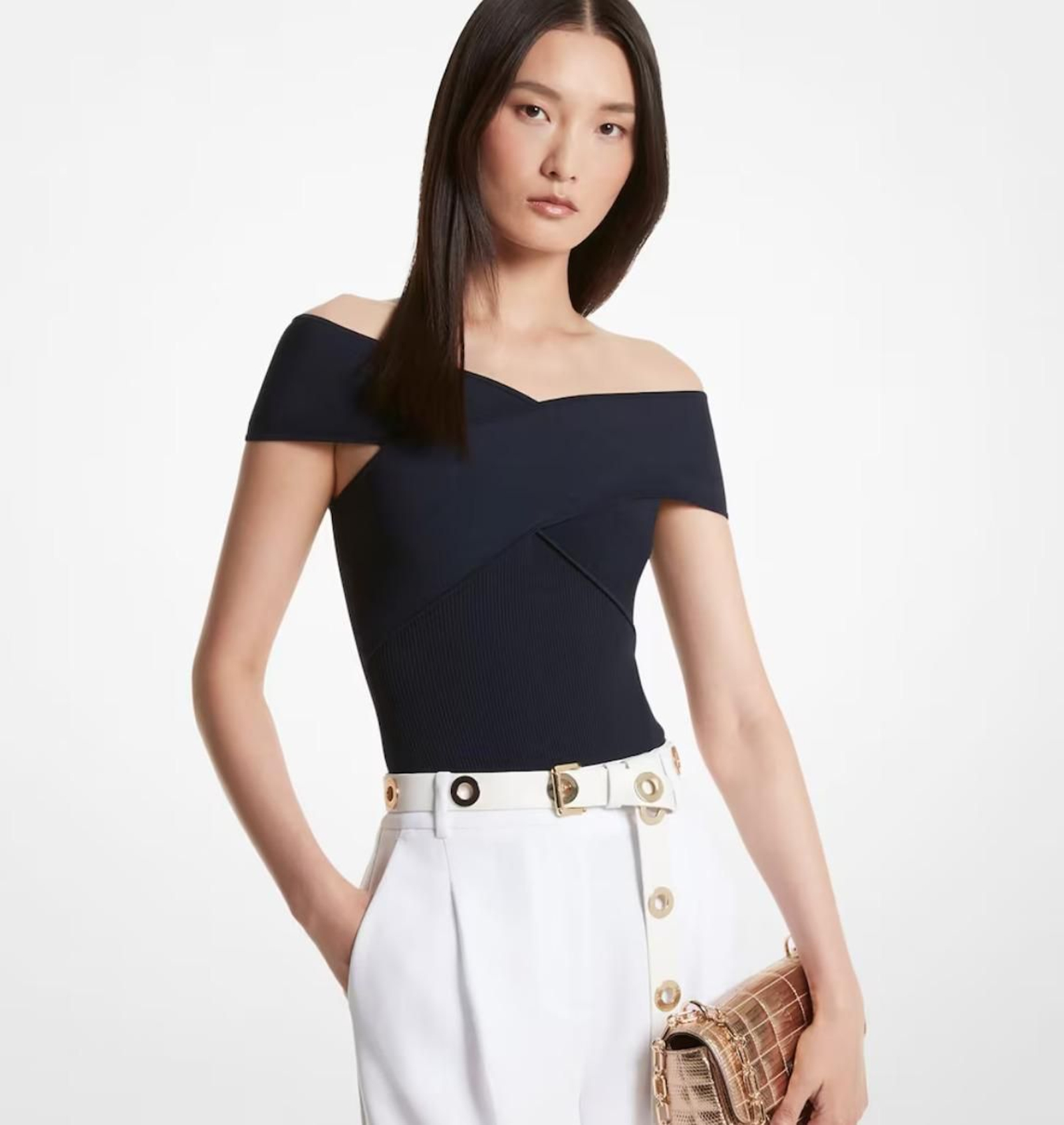 Se caracteriza por su escote recto con vuelta de hombros descubiertos (muy en tendencia esta temporada) y su manga 3/4.