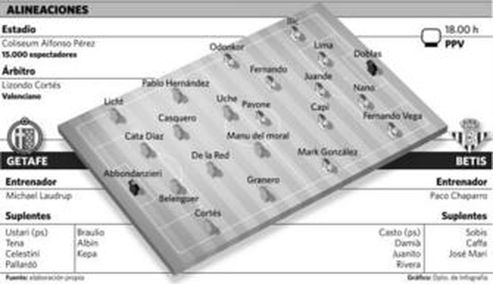 Ambos han tenido más problemas que de costumbre durante la semana para confeccionar las alineaciones, aunque fuese por querer agradar a más de uno y de dos en sus tímidas plegarias por algún objetivo individual. Así, los onces de ambos se van a nutrir de algún que otro garabato para que la disensión brille por su ausencia en el Coliseum. En contrapartida a la escasa competitividad, quizá se vea un fútbol abierto con el Getafe abusando de su buen manejo del balón en el mediocampo y con el Betis metiéndole picante con esas contras que hicieron furor en el Calderón, La Romareda o El Madrigal.