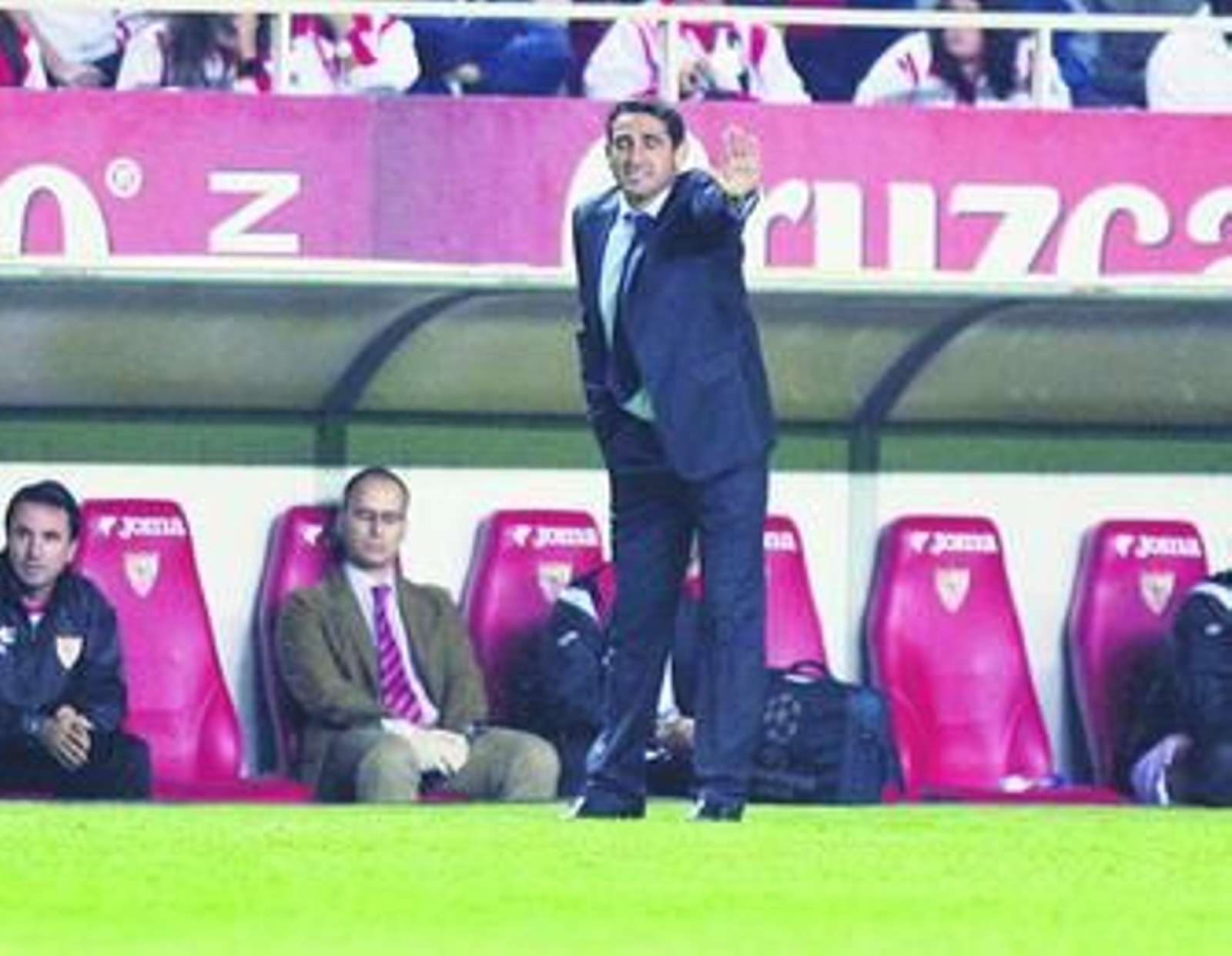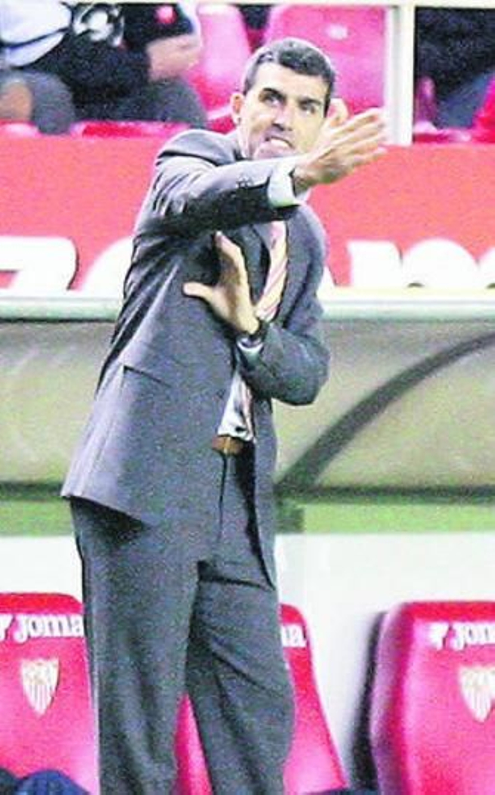 El de Arahal restó importancia a la falta de puntería de sus delanteros. "No podemos hablar de que al equipo le falta ni chispa ni nada. Hemos generado, entre balones fuera y paradas del portero, hasta 10 ocasiones claras de gol". Y sobre todo minimizó el caso de Negredo, que aún no ha marcado delante de su parroquia. "Es bueno que falle, señal evidente de que se las busca, lo preocupante sería que acabase el encuentro sin generarlas. Por ejemplo, hoy Luis (Fabiano) ha metido dos golazos, ya llegará el día en que los meta él. Es un delantero, vive del gol, es normal que esté ansioso. Lo que hay que hacer ahora es reforzarlo públicamente".