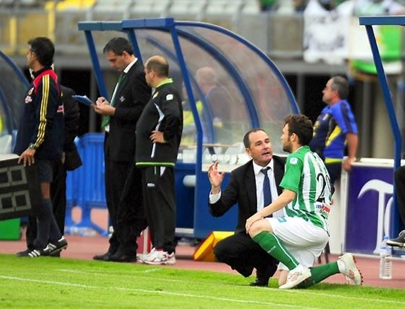 Porque además, el conjunto local echaba de menos en el mediocampo a Dani González. Josico y Jorge tienen, sobre todo, años y el Betis se fue haciendo el dueño de la zona caliente. Sólo le faltaba más posesión del balón, pero pronto la iba a encontrar por dos motivos. El primero fue porque Miguel García, que había entrado precisamente por Josico tras lesionarse éste, se iba a ir pronto a la caseta por una dura entrada sobre Nacho a la altura de los banquillos.
