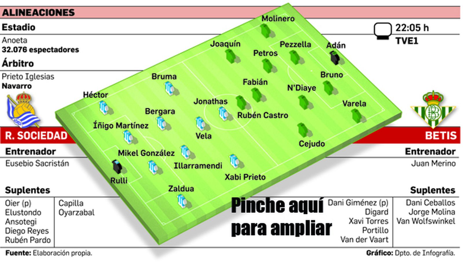 Pero si para los verdiblancos se trata de un partido que marcará el devenir de tantas cosas, otro tanto ocurre para la Real Sociedad. El revulsivo que produjo la llegada de Eusebio Sacristán se ha ido apagando con el paso de las jornadas y la goleada encajada ante el Sporting hace ocho días ha enrarecido todavía más el ambiente. Los donostiarras se aferran a su buena trayectoria como locales con el técnico vallisoletano -han sumado diez de los doce puntos en Anoeta- para revertir una situación que de perder ante los verdiblancos se convertiría, de nuevo, en casi irrespirable.