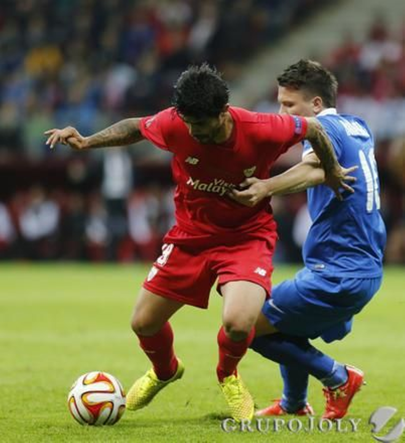 El Sevilla buscó los espacios jugando con la presión atosigante del Dnipro, que atacaba al poseedor del balón con tres y hasta cuatro jugadores como posesos. Y eso, haciéndolo bien, podía dar un montón de espacios. Había que jugar al primer toque ( de ahí muchas malas entregas de Reyes o Vitolo, aparte de que el césped no ayudó tampoco) y mover el balón, como en el córner en el gol del empate, era clave. También esa tensión tan fuerte en defensa de los ucranianos hacía que ellos solos desestructuraran sus líneas. Mucho más con una defensa de cuatro que defendía en horizontal y no en diagonal. Vitolo mejoró cuando Aleix Vidal tuvo el apoyo de Coke por dentro.