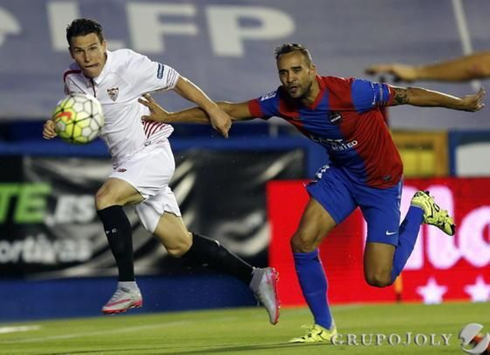 De inicio frente al Levante, Emery apostó por jugar con dos delanteros natos: Llorente y Gameiro. El vasco recibiría balones en la medular para habilitar al francés que se estaría moviendo por todo la zona defensiva del equipo valenciano. A priori, el planteamiento para jugar frente a un equipo que está un par de escalones por debajo de los de Nervión es el bueno. Pero hoy el Sevilla no ha demostrado estar por encima.