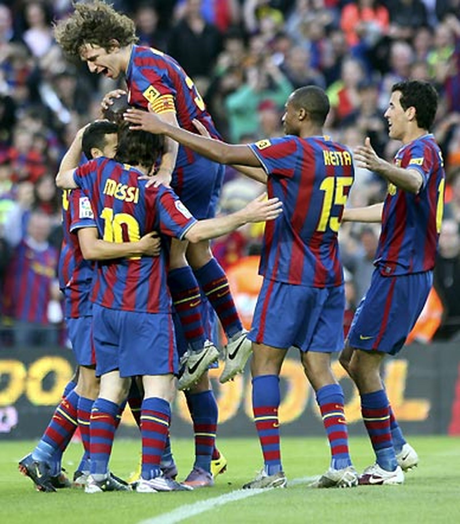 El trabajo ya estaba hecho. Con 59 minutos por jugarse, la fiesta era completa en el Camp Nou. En el segundo tiempo, el Barça ya se sintió campeón desde el primer minuto de la reanudación ante un rival rendido a su suerte, que sólo podía estar pendiente a la radio, para ver si podía salvar la categoría. En la segunda mitad llegó el 3-0, obra de Messi, en una gran acción de Touré Yayá, que regaló al argentino su trigésimo tercer tanto liguero. El 4-0 también lo marcó el argentino, con lo que Messi entró en los libros de récords del Barça. Fue su 34 tanto en Liga e iguala los que marcó Ronaldo Luiz Nazario en su día. En total, el delantero ha sumado 47 en todas las competiciones.