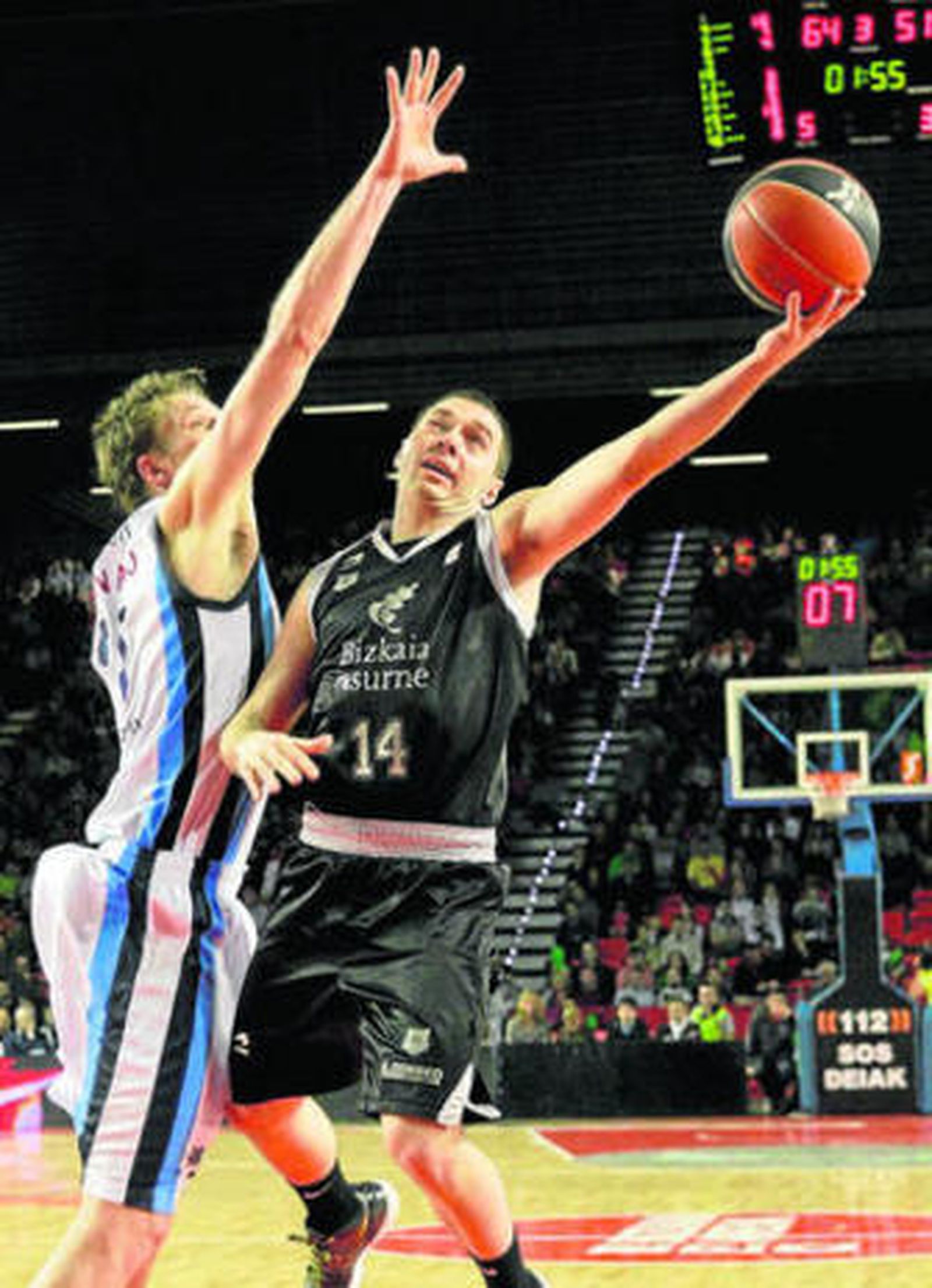 El Lagun Aro se desquició un tanto con el arbitraje y sucumbió en un mal día en el tiro ante el acierto rival en los triples (14/30 en triples) y su incapacidad para cerrar el rebote defensivo (cedió 18 rechaces en canasta propia). Comenzó arrollando en los primeros minutos el conjunto local, aunque con Javi Rodríguez dirigiendo a los suyos tras un primer cuarto igualado, en el segundo comenzó a romperse el encuentro hasta llegar al descanso 14 arriba para los bilbaínos (48-34).