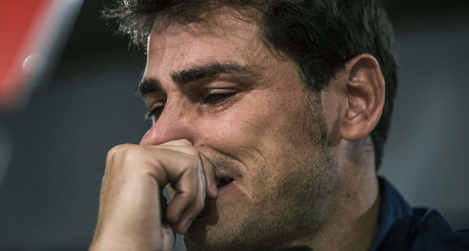 Ataviado con una camiseta de color azul oscuro y un pantalón beige, Iker Casillas irrumpió a las 12:04 horas en la sala de prensa para leer el papel sobre el que plasmó su mensaje de despedida. "Son treinta segundos pero tardaré casi una hora", bromeó ya con las lágrimas cayendo de sus ojos, cumpliendo con la promesa que poco antes había hecho a los fotógrafos. "Vais a tener otra, con las lágrimas", dijo rodeado por los flashes.