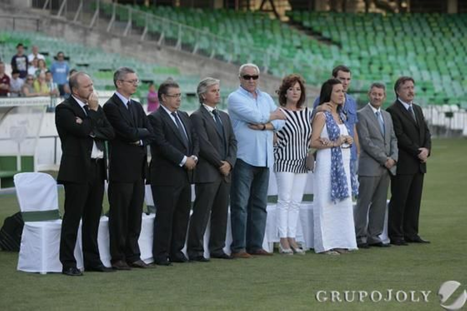 No faltó el Sevilla, con Monchi, la consejera Piedad Parejo, el vicesecretario José María del Nido Carrasco, Víctor Orta y el futbolista lebrijano Cala. Tampoco el alcalde de Sevilla, Juan Ignacio Zoido faltó a la cita, ni el ministro de Justicia, Alberto Ruiz Gallardón. Se vio también por allí al presidente de la Federación Andaluza de Fútbol, Eduardo Herrera, y a numerosos representantes del fútbol modesto en las gradas... Pocos faltaron a este último adiós a Miki Roqué, con las gargantas de casi dos mil béticos recordándolo con sus cánticos, vítores y aplausos desde el comienzo de una ceremonia que duró poco más de una hora.
