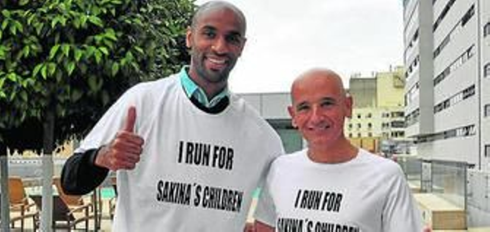 Horas antes de regresar a Pekín -17 horas de vuelos y enlaces-, Kanoute recibía a dos miembros del Club Amigos del Parque de María Luisa, que le presentaron las camisetas con las que correrán el Maratón de Nueva York, con un mensaje solidario en favor de la Fundación Kanoute: "I run for Sakina's children", reza la leyenda que difundirán Julio Molina (ya corrió allí en 2008 con la camiseta con la que Puerta marcó al Schalke) y Bernardo Castro. "En ese maratón se recauda cada año unos 100 millones de dólares en actos solidarios", recuerda Julio Molina.