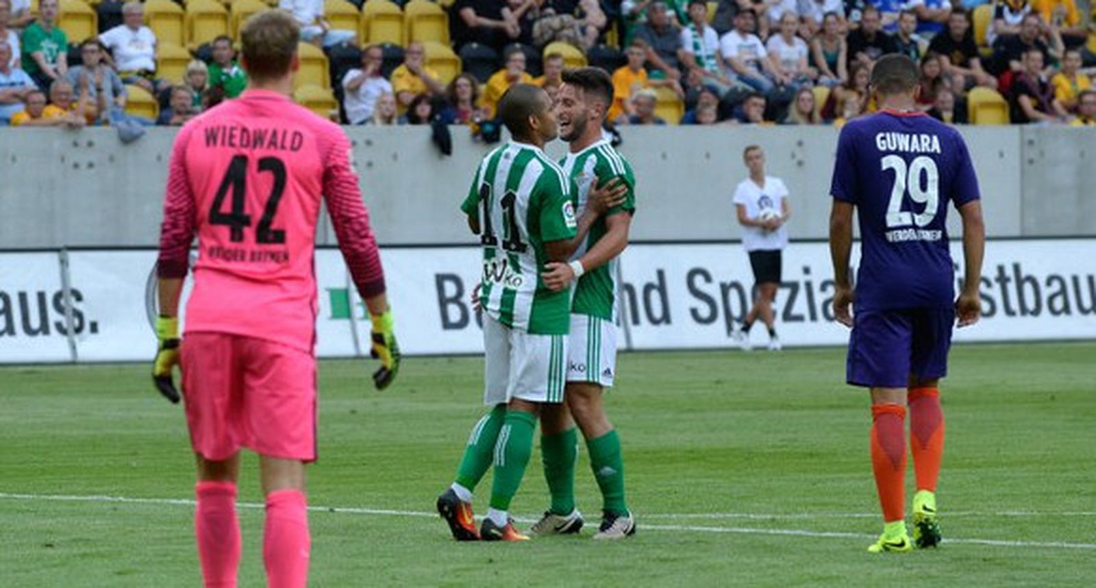 Con un once plagado de jóvenes, los de Poyet dominan el balón para ganar al Werder Bremen Nahuel anota el tanto bético en el estreno de Sanabria