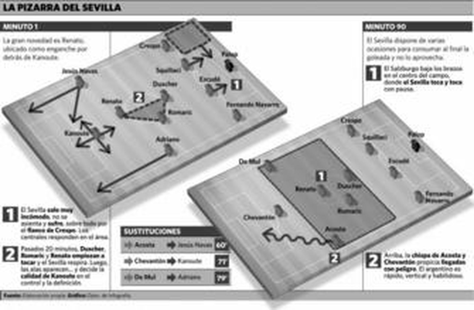 Jugar en hierba artificial debe beneficiar a los más técnicos, ya que los controles se complican ante un balón tan vivo. Y así lo demostró Kanoute en una de las referidas incursiones desde las alas. La hizo Adriano, y el malí se desmarcó en el área para dominar una bola complicadísima, perfilarse y ejecutar. Fue la jugada clave, la que convenció al Salzburgo de que era imposible variar el rumbo del pulso.