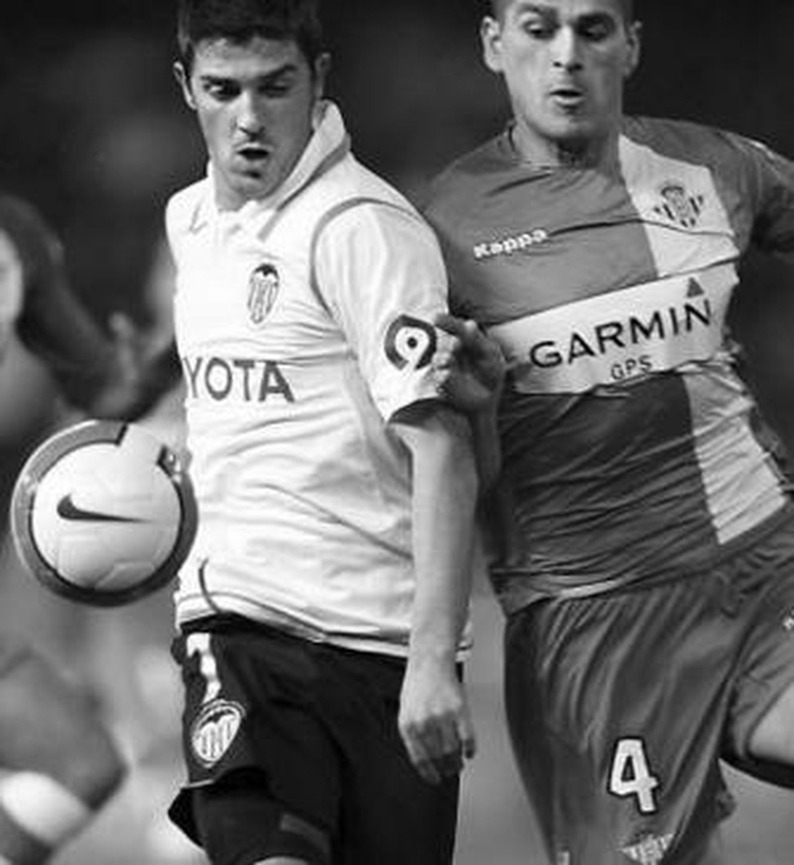 Paco Chaparro le dio la alternativa a Álex Ortiz en Mestalla, un escenario complicado por la entidad de rivales como Villa o Silva · Se desenvolvió bien en la línea adelantada, salvo en la jugada del primer gol