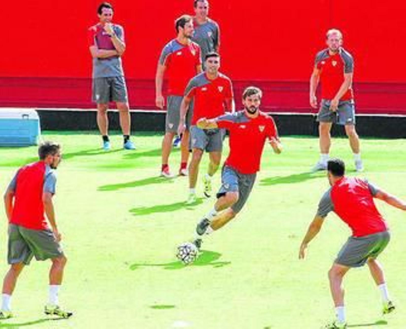 Plato fortísimo para comenzar la Liga 15-16 en el remozado Ramón Sánchez-Pizjuán. Nada menos que el partido de la jornada, un Sevilla-Atlético que, si ya estaba cargado de electricidad en los últimos tiempos, este curso trae el añadido de que los blanquirrojos se han retado a sí mismos para intentar dar el asalto definitivo a la aristocracia española, después de haberlo dado a la europea. El nuevo Sevilla de Emery y Llorente, nuevo adalid de las emociones que ya conoció en primera persona el estado de ebullición que vive su nueva afición, se viste de largo con una prueba de primerísimo nivel competitivo. Porque el Atlético de Madrid de Simeone, reforzado con Jackson Martínez y Vietto como figuras además de los hijos pródigos Filipe Luis y Óliver, mantiene, pese a los cambios en la ornamentación del equipo, la estructura pétrea de un bloque competitivo. Saber si el también hipercompetitivo Sevilla está ya capacitado para horadar esa marmórea escuadra modelada a imagen y semejanza del racial ex sevillista es lo que se dirime hoy.