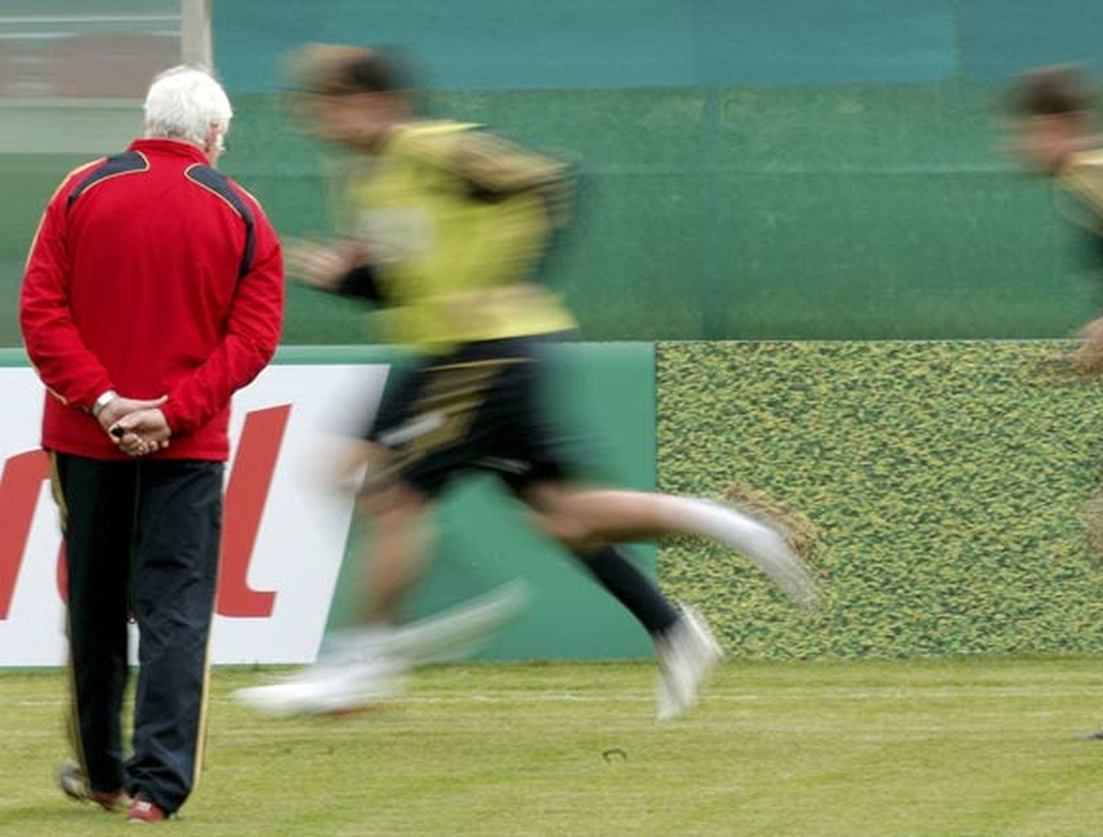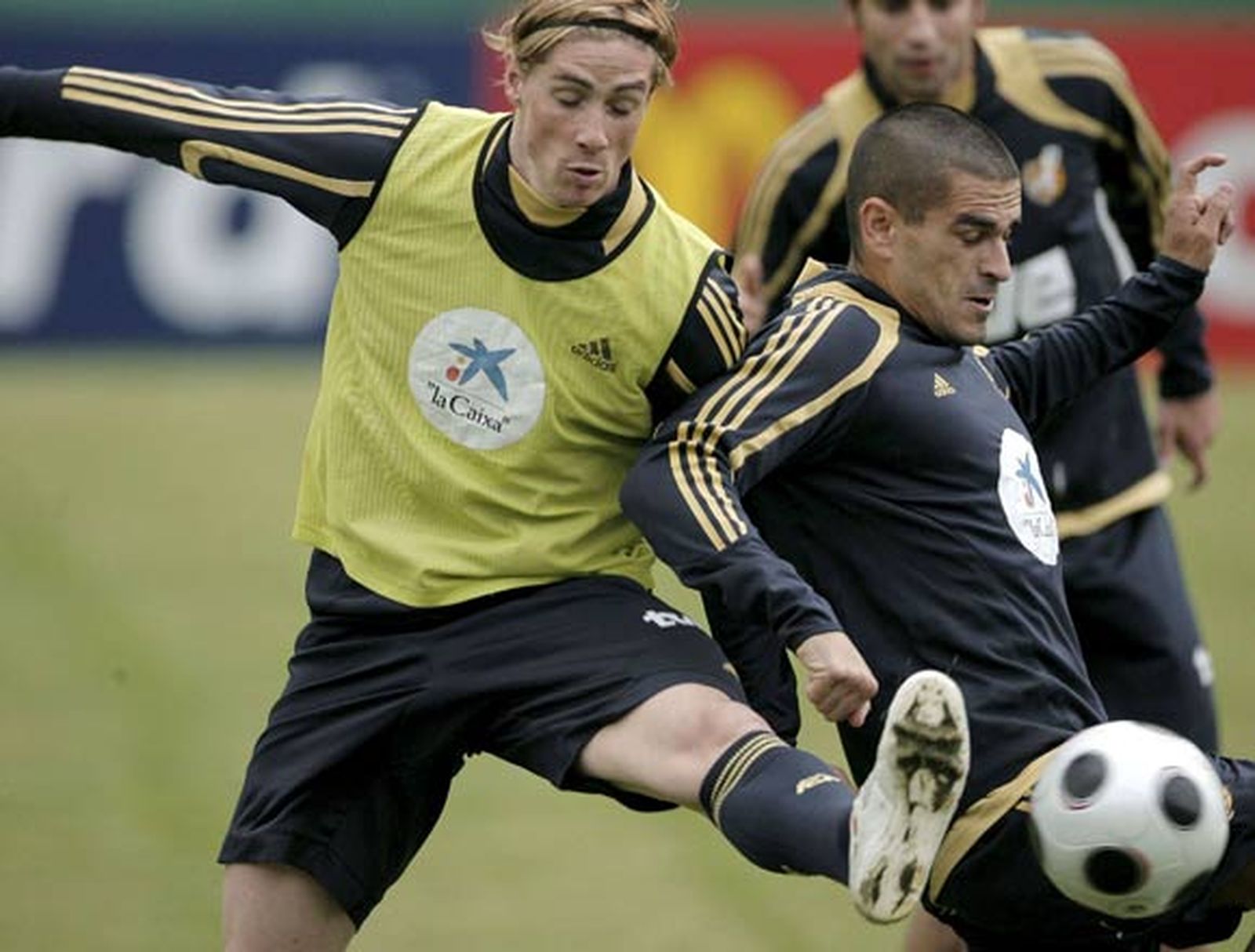 Aragonés se mostró muy activo durante el exigente entrenamiento en el que el presunto equipo titular -el mismo que el que goleó a Rusia- perdió por 2-1 con los teóricos suplentes.